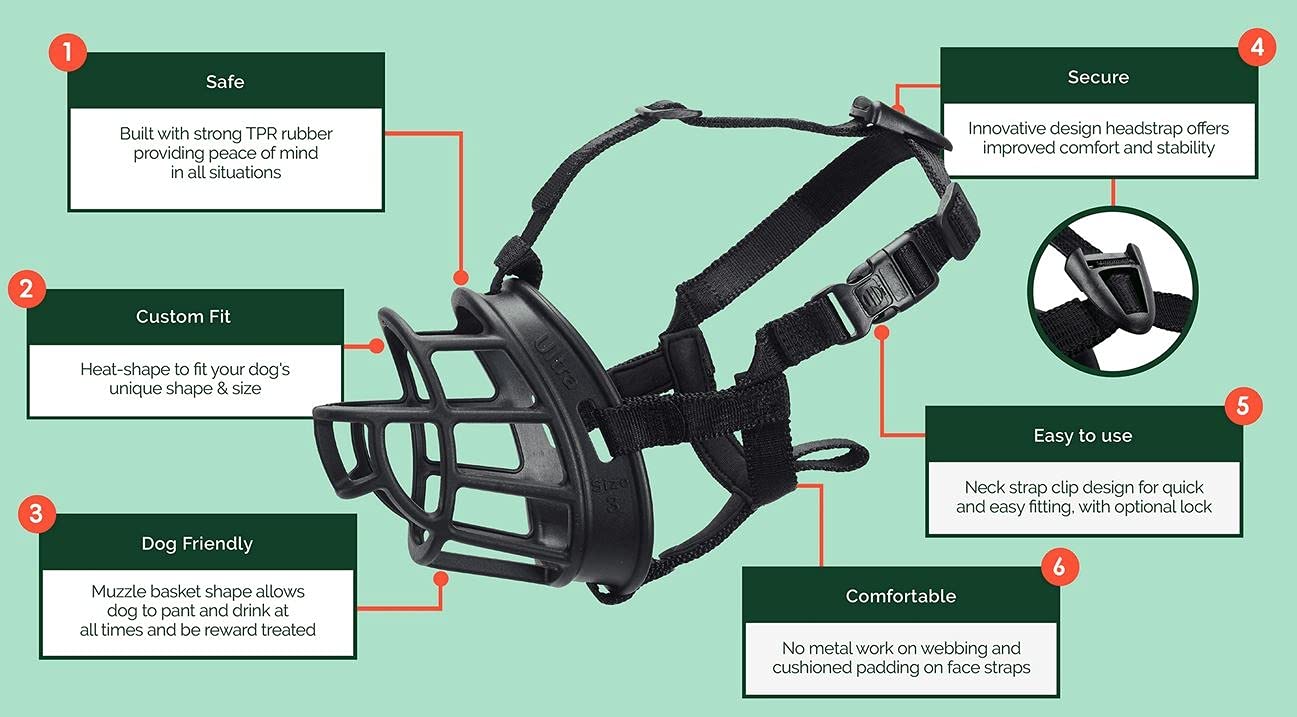 - HEAT SHAPE FOR CUSTOM FIT: Like a mouth-guard, the Baskerville Ultra Muzzle can be heat-shaped to fit your dog's unique shape & size. See fitting instructions for more info and how to find the best size of muzzle for your dog