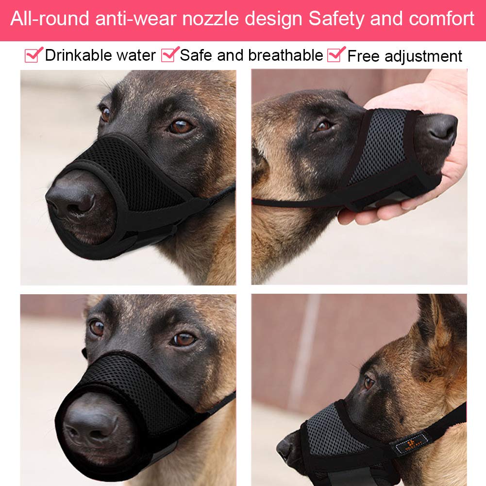 - Adjustable SizeThe design allows the dog mouth guard to be adjusted to the most appropriate size depending on the shape of the dog mouth. And the adjustable loop connecting the collar helps to keep puppy muzzle securely in place, ensures fit snugly and Anti-slipped.