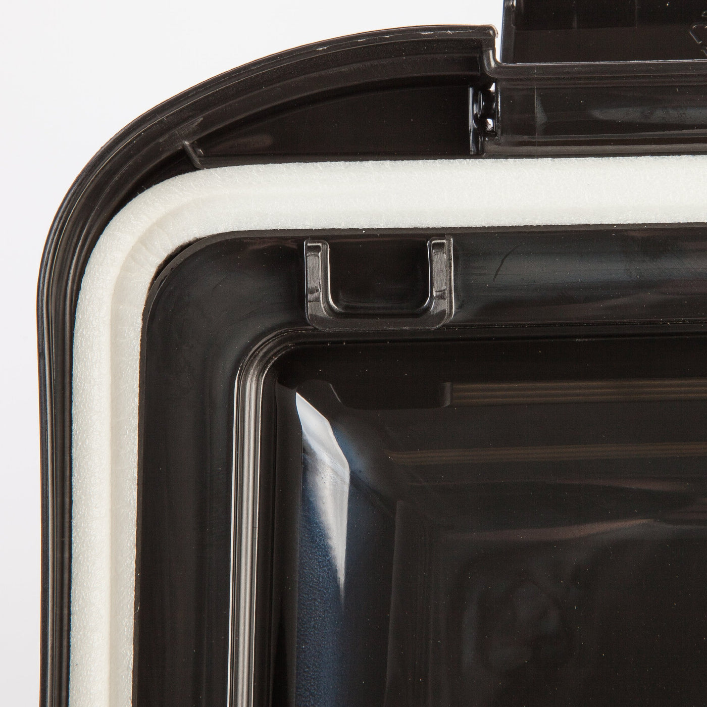 Color:Black | Size:12.75 QT - 10 LB The IRIS Nesting Airtight Pet Food Container is the perfect solution for all your pet food storage needs. The airtight seal and snap-tight latch lock in freshness and keep moisture, humidity, and pests out. Easily check the contents of this translucent container and its tapered shape makes it simple to scoop out pet food. Four sizes to choose from, to accommodate most popular bag sizes of dry dog food, cat food and bird seed. The two largest sizes include 4 free wheeling casters for easy mobility. This airtight container is also great for storing wood chips, charcoal, and road salt. Made in the USA with BPA free material.