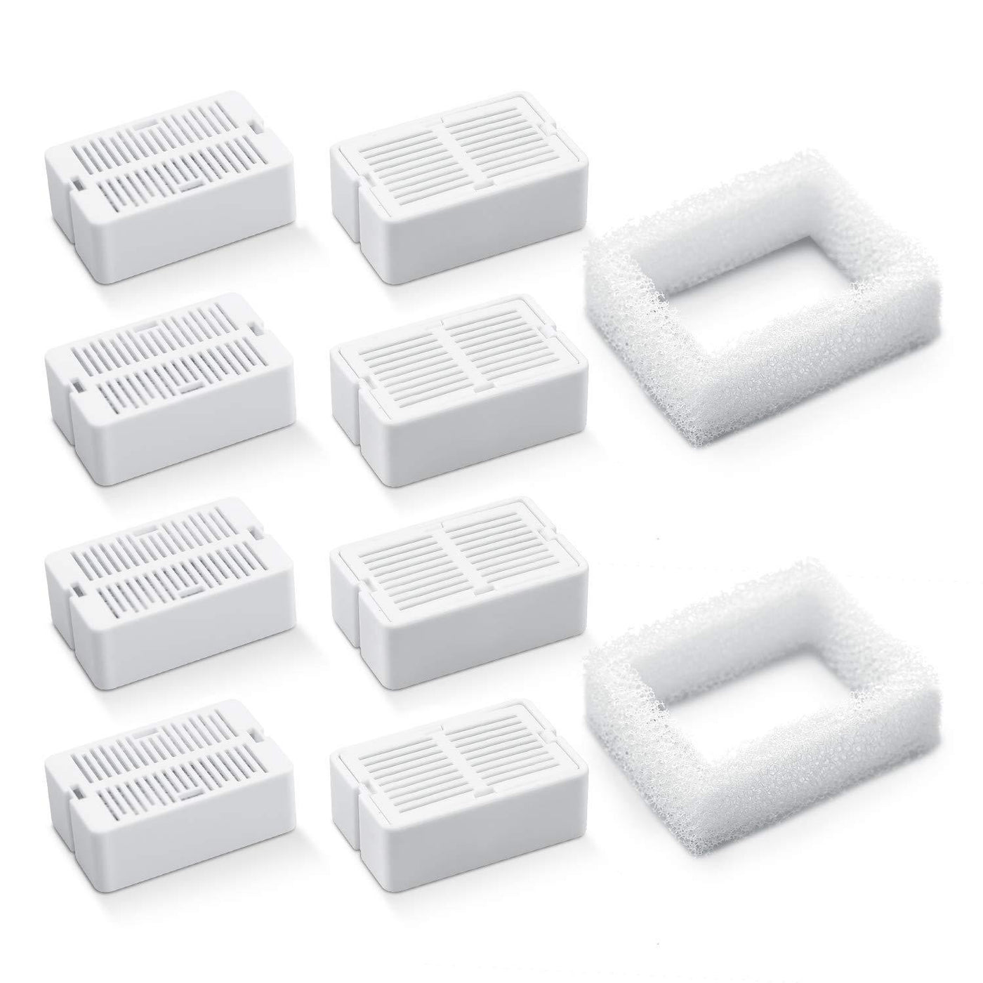 VinDox Pet Fountain Replacement Filters, 8 Cat Fountain Carbon Filters and 2 Foam Pre-Filters for Cupcake Ceramic Pet Fountain Pet Drinking Fountain Porcelain