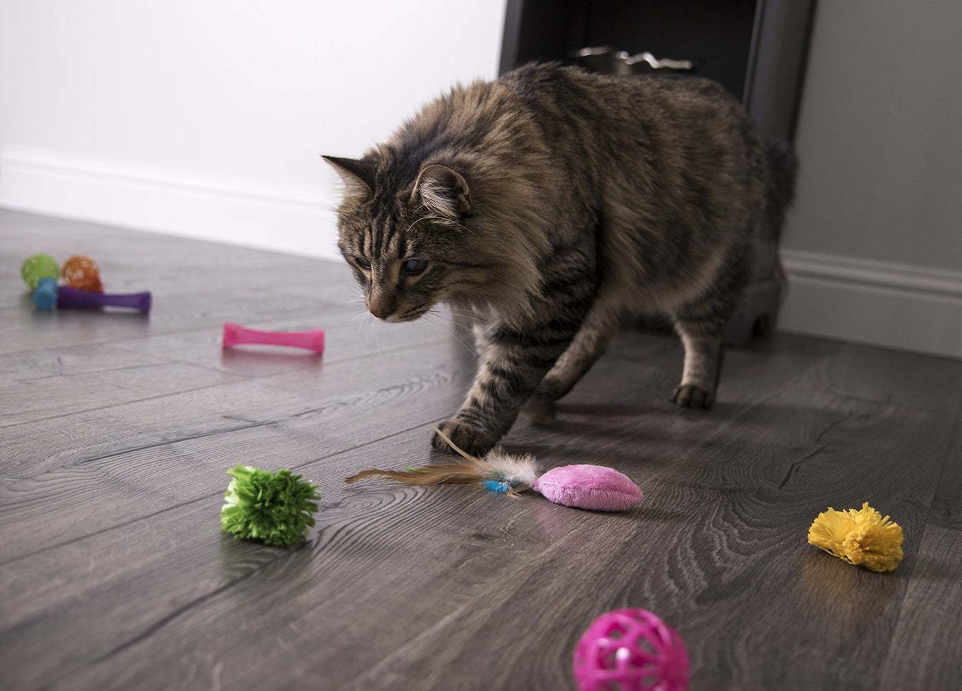 - Variety pack of lightweight cat toys includes balls, mesh flingers, raffia teasers, SmartyKat catnip and more