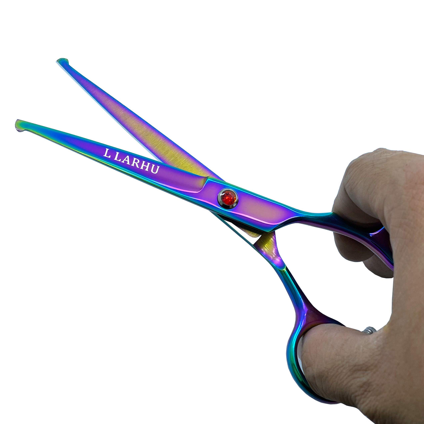 - The round tip end has higher safety-these dog trimming scissors with customized round tip tips are safer to use. Use the tip of the trimmed dog scissors to minimize the risk of accidental injury or poking the dog. Don't worry about poking pets accidentally, especially when grooming sensitive areas such as eyes. These pet scissors are suitable for beginners and home DIY grooming pets. It can help you groom your pet more easily and safely