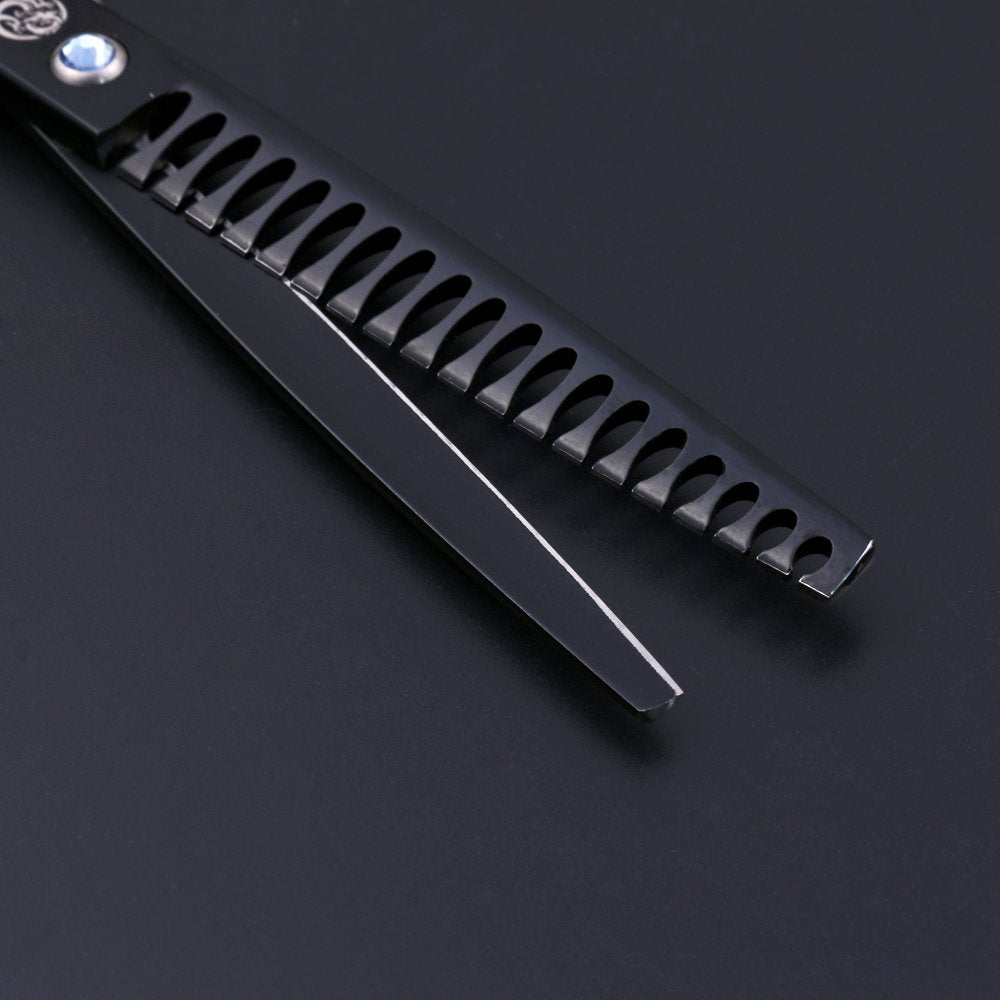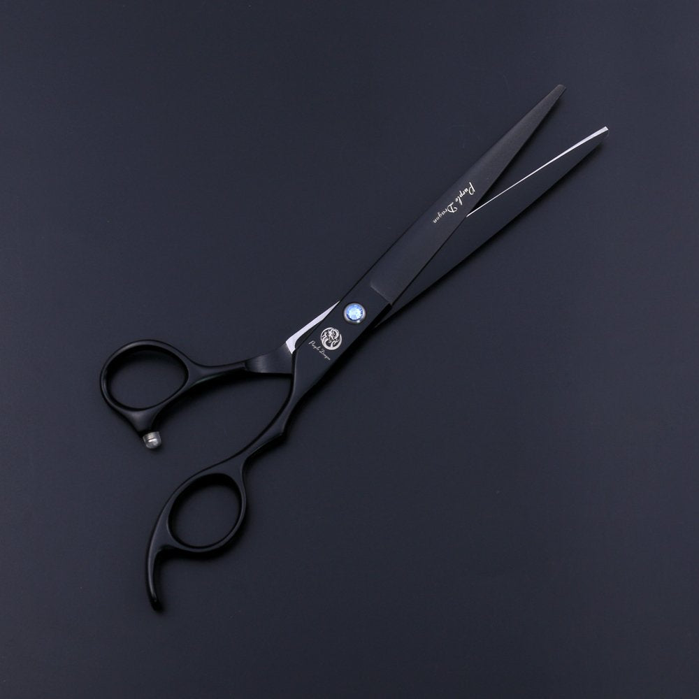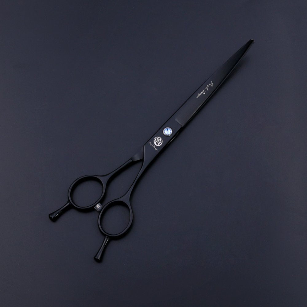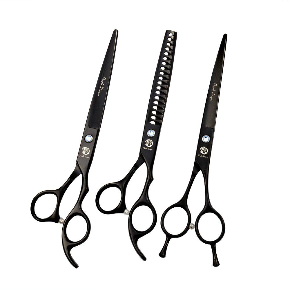 Purple Dragon 7.0/8.0 inch Professional Dog Grooming Hair Cutting Scissor &Curved Scissor&Chunker Shear Kit with Bag - for Pet Groomer or Family DIY Pet Use 7.0 inch Black