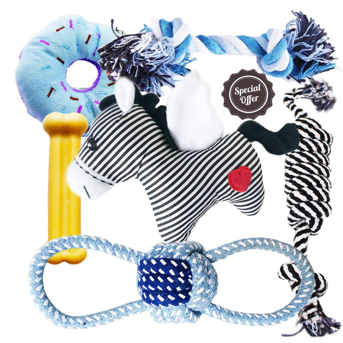 ♥The Best Chew Toys for Small Dogs. The Best Teething Toys for Small Puppies! When a fur baby was born, When a new member joined in your family You need some gift like this dog toy bundle This great variety dog toys could tell you which kind they like best ♥Package Including: 1 stuffed horse 1 stuffed donuts 1 plastic bone 3 rope toys ♥Ingredients: Cotton, Fiber Machine wash! ♥Legal Disclaimer: Dog toys puppy toys dog teething toys puppy chew toys and dog chew toys