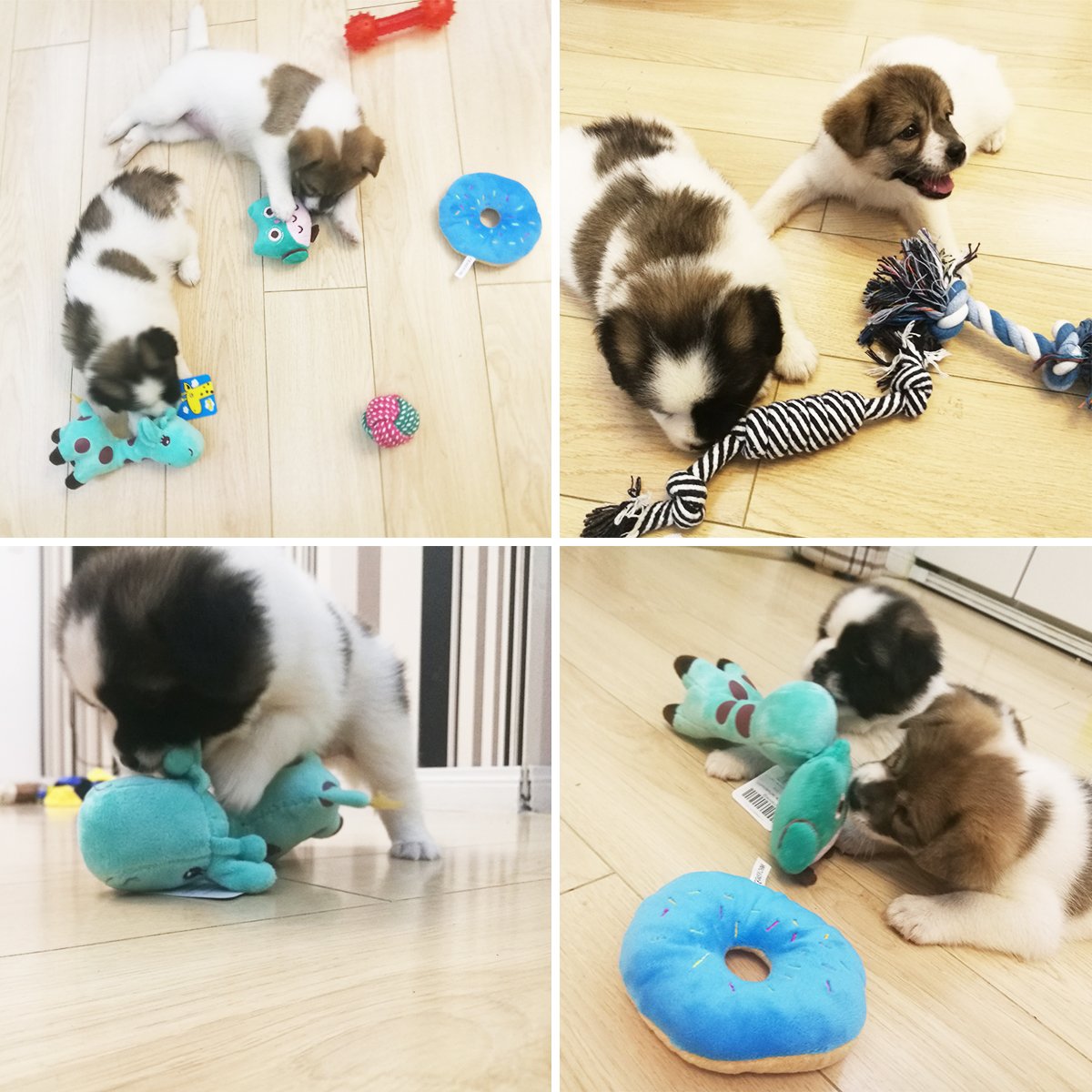 - THE MOST POPULAR DOG TOYS:Including squeaky deers, ropes, donuts. Dog chew toys set