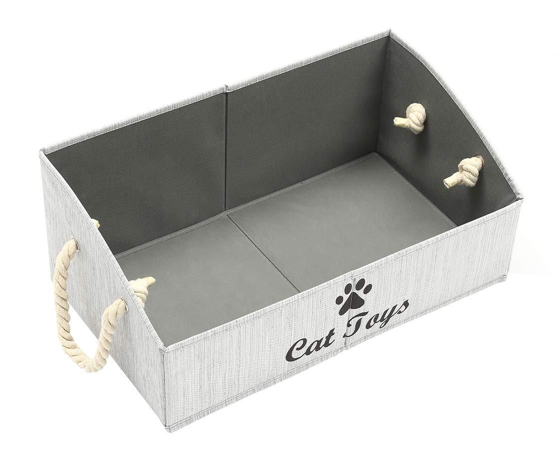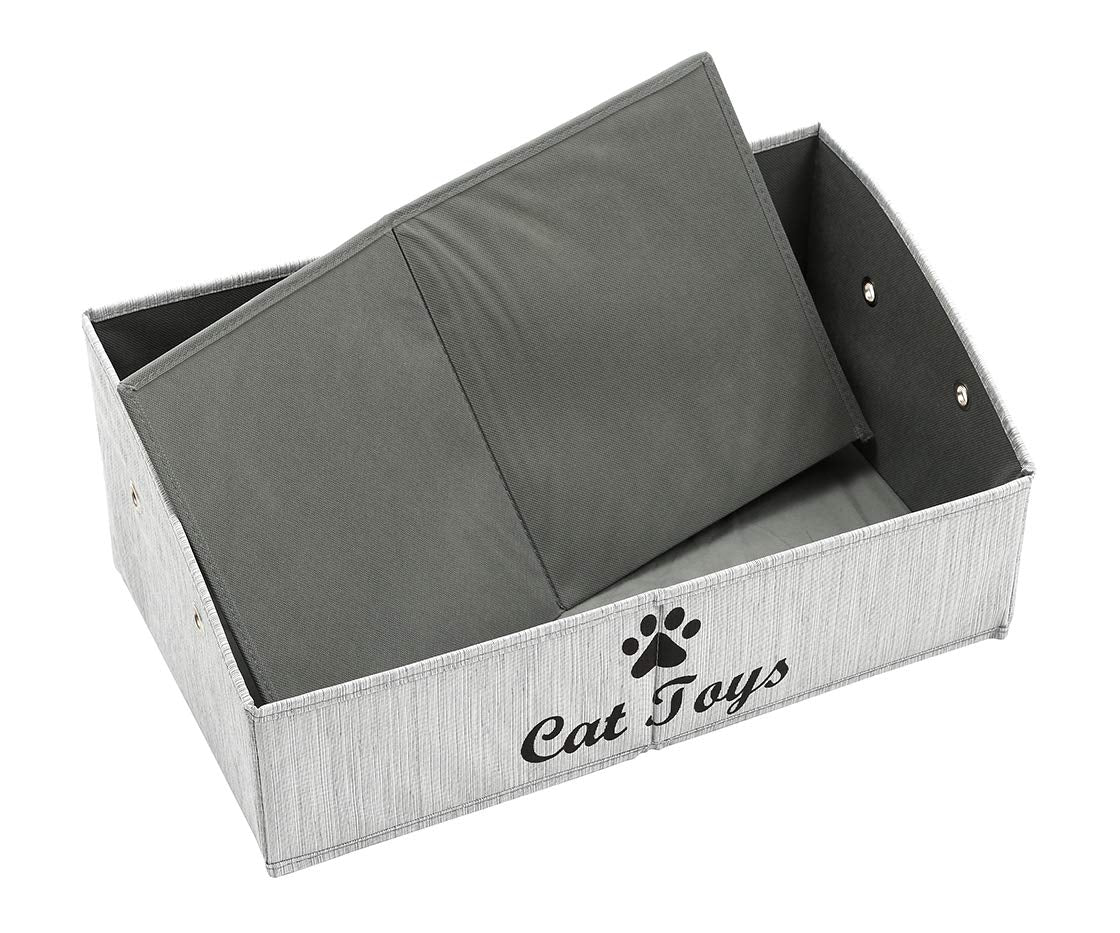 Morezi Canvas Pet Toy and Accessory Storage Bin, Basket Chest Organizer - Perfect for Organizing Pet Toys, Blankets, Leashes and Food 0605 Cat Grey