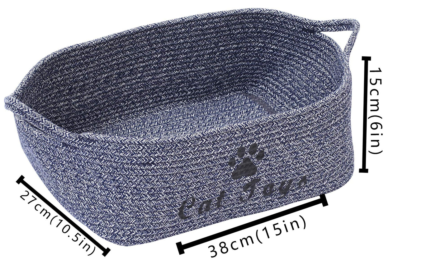 Do you want to your friend's toys are no longer strewn around the house and garden, and knows where to go when he wants to get an item to play with? He/She also seems to find not having to scour for a specific toy quite a bonus, just go to the box and choose the thing that you want the human to play with you with. Easy! Get this pet toy box. Your friend do love it. This is a cute little storage box and works well for your pups/kitties toys - Perfect for Organization for pets at its best! Perfect for holding dry pet treats, leashes, collars, toys, blankets, outfits, grooming supplies and more. Also it can be used to pet bed if your dog or cat love napping and laying on all their toys. The perfect height fit for short dogs and cats and can easily dig around for the perfect toy. Made from cotton rope, durable and chew resistant for the young cat / kitty. lightweight with handles make it easy to transport or move when needed. Easy to clean: Wash by hand or just throw it in washing machine. Steam ironed available to remove wrinkles when you first received it or washed it. Canvas pet toy storage basket size : 15" Length 10.5" Wide 6" High (38CM Length 27CM Wide 15CM High) - Spacious and keeping your living area clean and clutter free. Just the right sizes! Large enough to fit a nice amount of toys - but not so big or bulky as to take up too much space or be an eyesore. This cat container are seriously beautiful. Read more Features Loading all your freind's stuff It’s perfect toy basket! From toys, blankets, diapers to coats - our Baskets hold a lot! Much quieter on the hard floor than the plastic bins. Pet bed? Not bad! It can be used to pet bed if your puppy or kitty love napping and laying on all their toys. Perfect size It’s a perfect size. Your friend can easily get his / her toys out and pick which one he / she wants. Not too high or low. Also looks very unobtrusive and fits well with most decors. Washing machine available Folds flat for storage when not in use. Wash by hand or just throw it in washing machine. Steam ironed available to remove wrinkles when you first received it or washed it. Read more