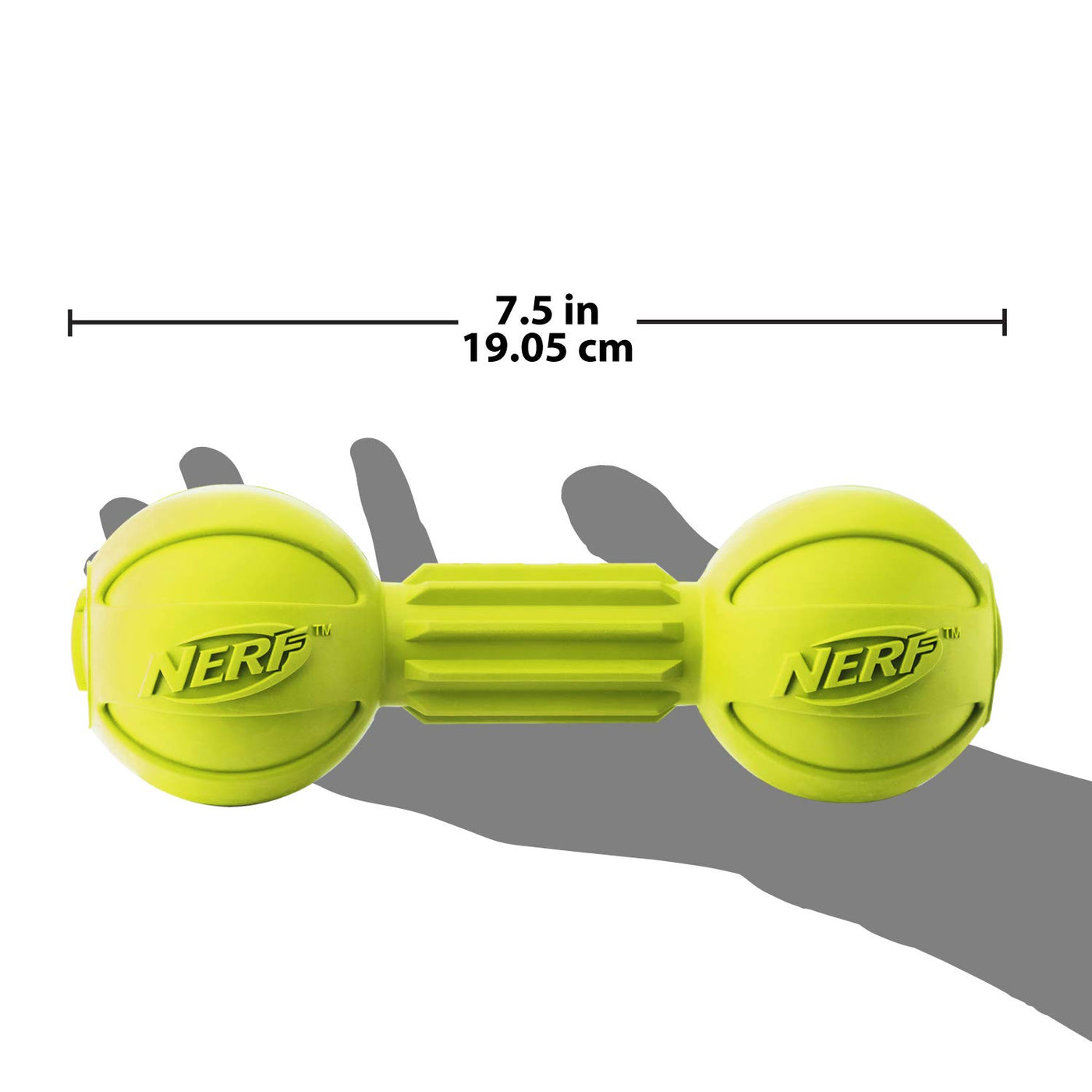 • NERF-TOUGH: Nerf-quality materials make our Barbell Chew Toy perfect for fetch and for teaching your dog new tricks