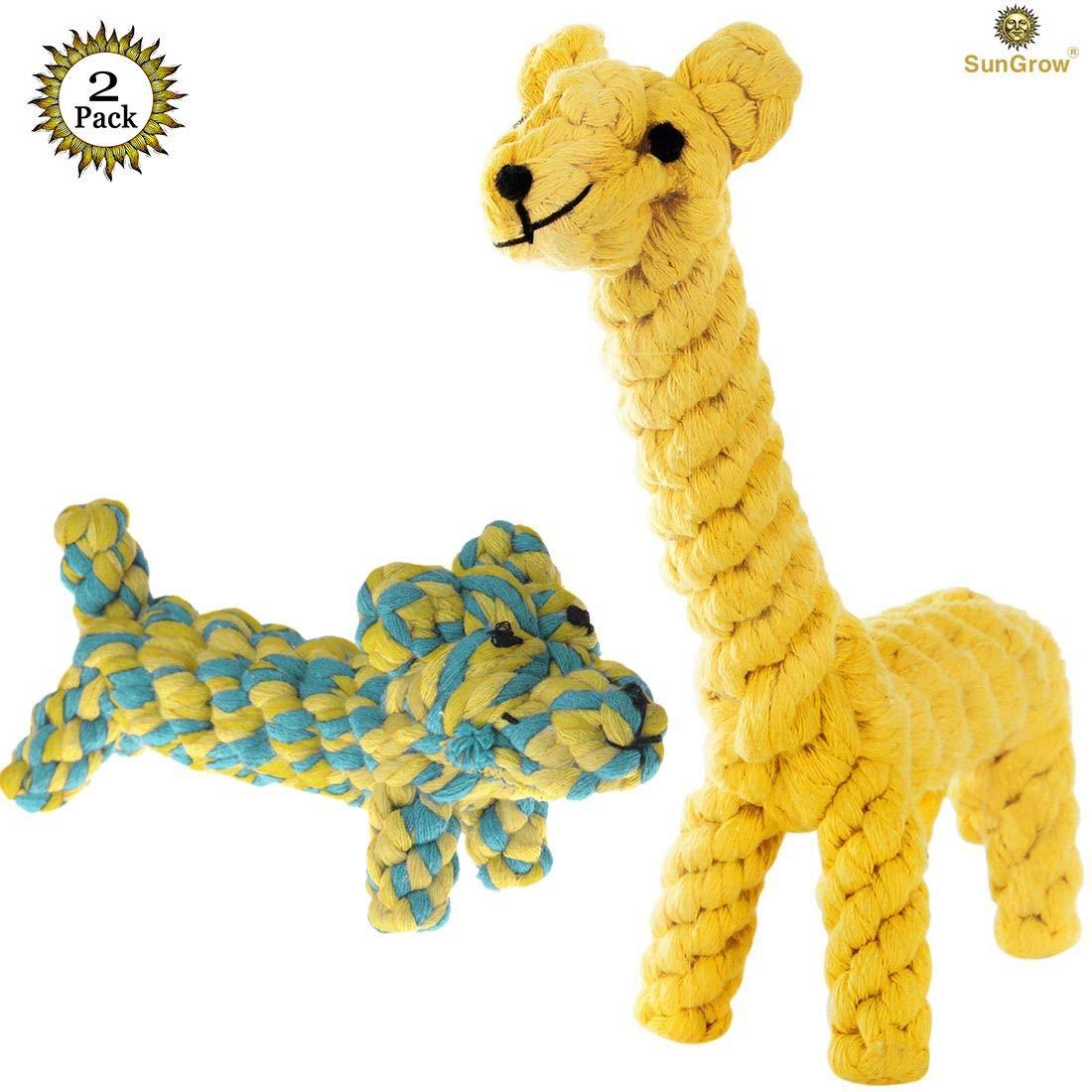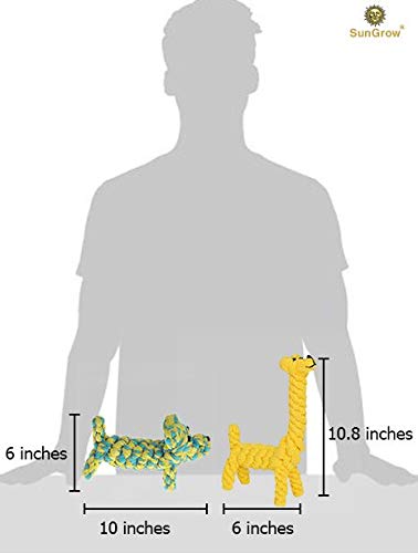 • SATISFY THEIR URGE TO CHEWING --- Chewing is instinctive for all dogs; it fulfills needs such as relieving anxiety and exercising their jaws. Puppies, in particular, like to chew when they are teething. The playful pair of Gaby the Giraffe and Daisy the Dog are the perfect toys to help prevent unwanted chewing. Instead of tearing apart your furniture or ruining a new pair of shoes, these heavy-duty rope chew toys by SunGrow keep your dog busy and satisfies his need to chew.