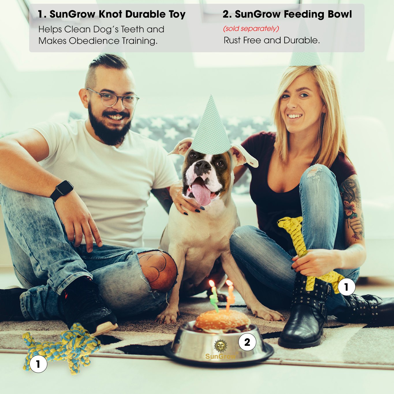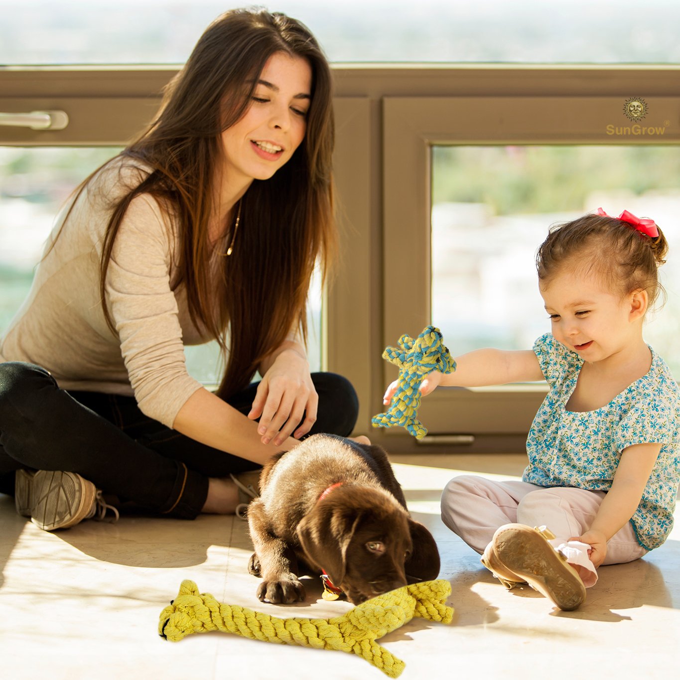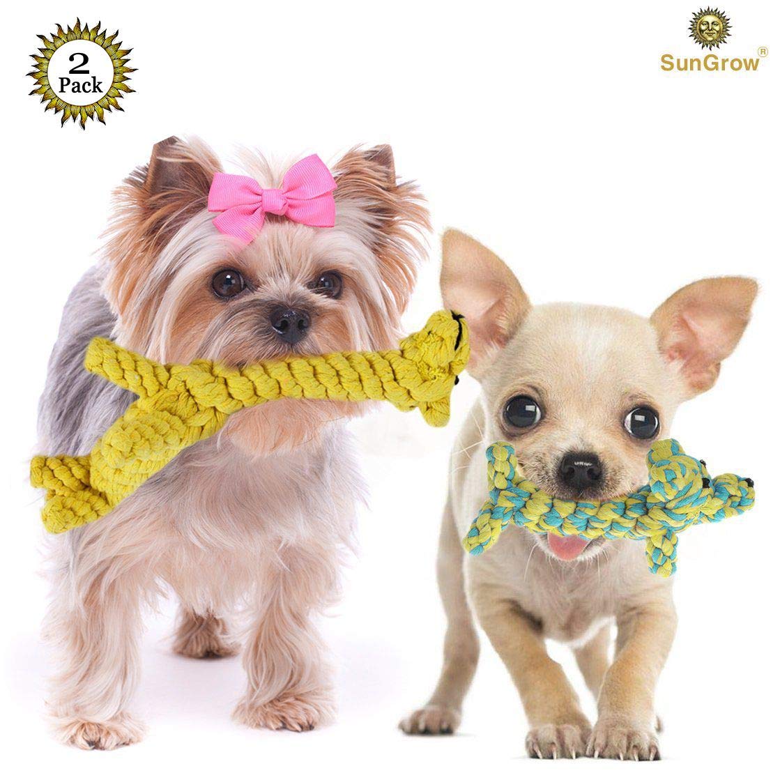 • DOUBLE JOY IN PLAYING FETCH OR TUG-OF-WAR --- Experience the joy of seeing your pet getting a brand new toy and then double it! The amusing duo serves as the perfect interactive toy to teach your dog how to fetch or spend precious bonding time playing tug-of-war. These tough, washable rope chew toys from SunGrow provide you and your dog with hours of exercise and fun. Strengthen your relationship and make training enjoyable by incorporating these exciting dog toys.
