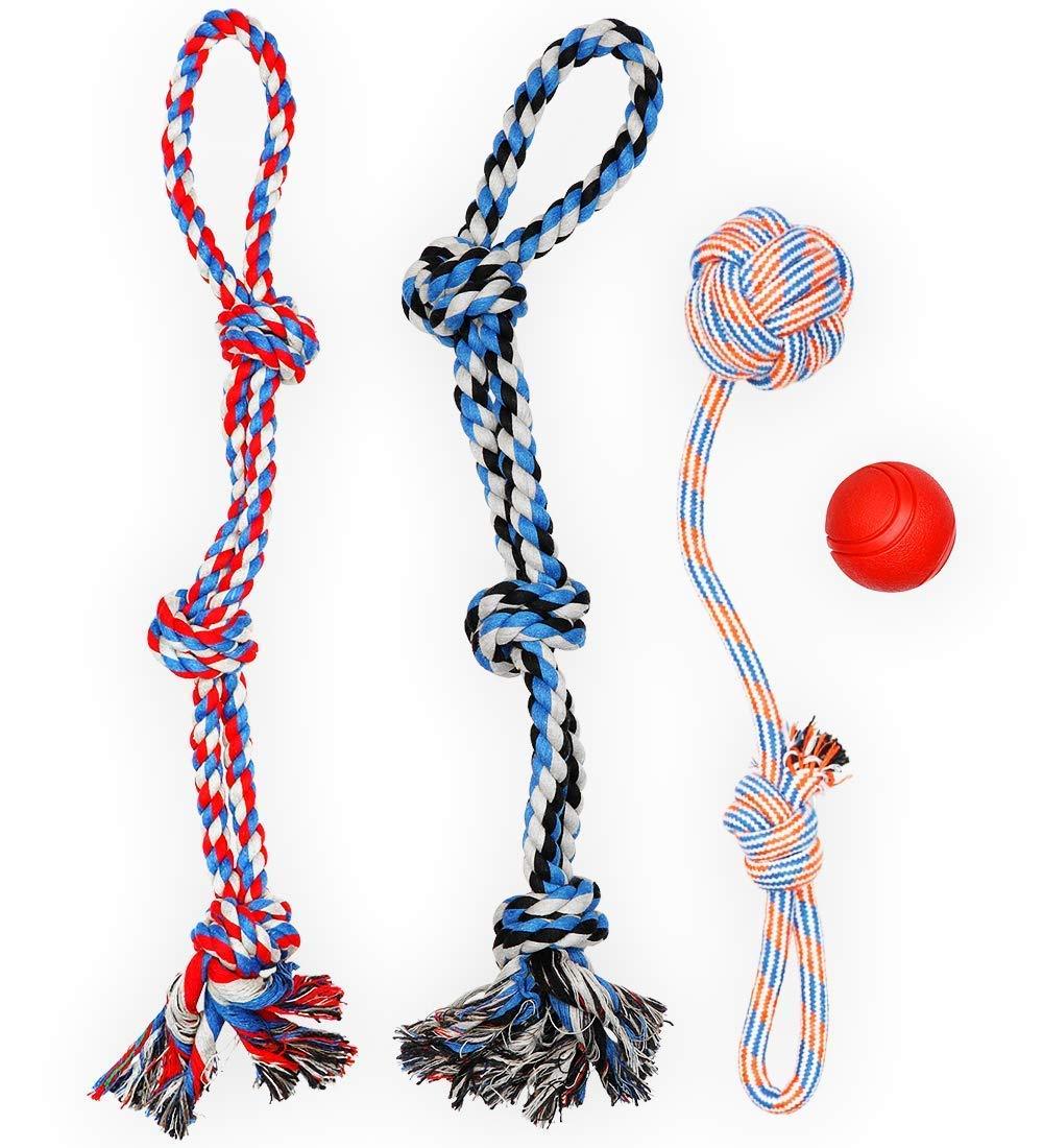 - SAFETY TESTED AND PASSED ASTM F-963 CHILDRENS TOY SAFETY STANDARDS & LIFETIME GUARANTEEDYour dog is guaranteed to have a great time with these toys for large dogs for a long time, or your money back! This dog rope toys pack is perfect for tug of war. Enjoy a tug a war game with this set of dog rope toys for extra large dogs. This is a dog rope toys big set that can even be dog rope toys for medium dogs if they need chew teething toys! 3 rope toys for tug & dog ball for fetch