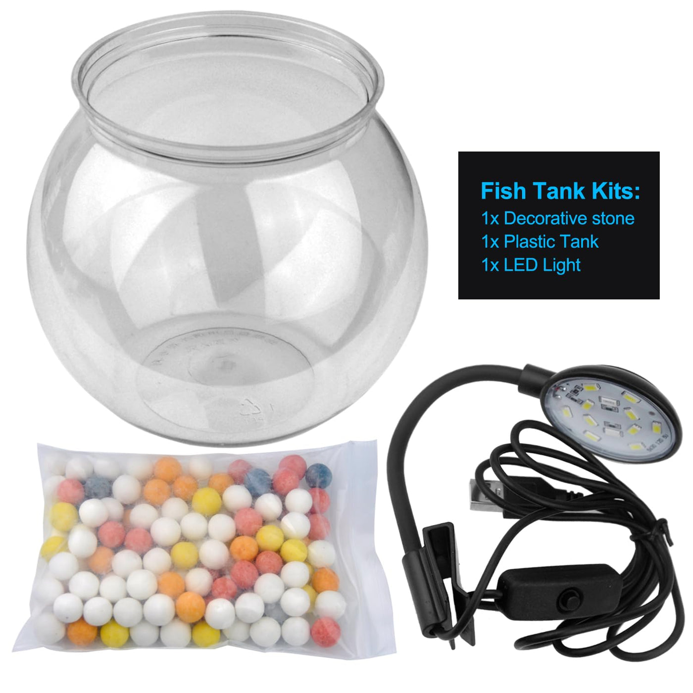 - 1.[Newpol Aquarium]: Newpol 0.8 gallon circular small plastic fish tank is good for raise betta, guppies, angel fish and other ornamental fishes. This fish tank is equipped with 5V USB led lights and Ceramic decorative stones.