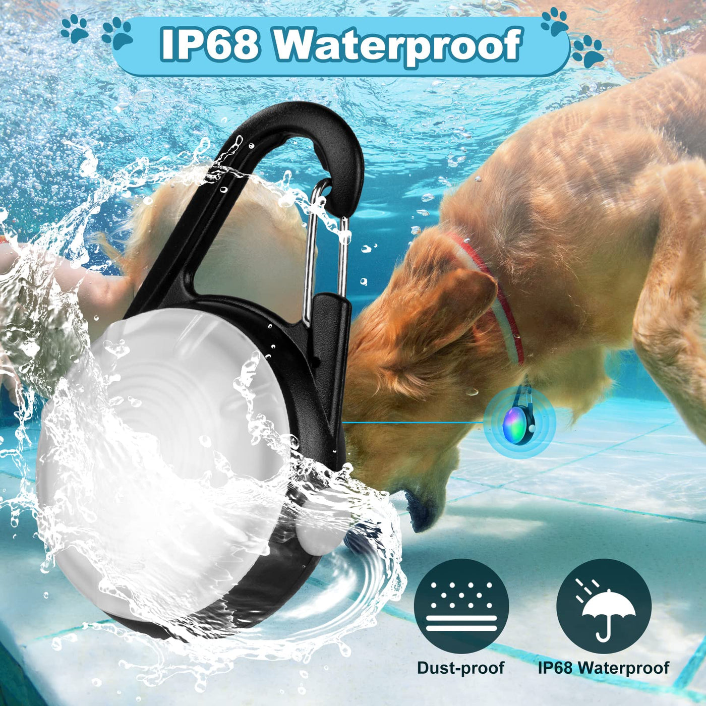 - IP68 Waterproof & DurableThe IP68 waterproof dog light has been tested for immersion in water, will not be affected by rain, snow, sand and dust; and the dog walking light is made of ABS plastic material, the shell is hard and durable, not easy to break, suitable for various outdoor activities