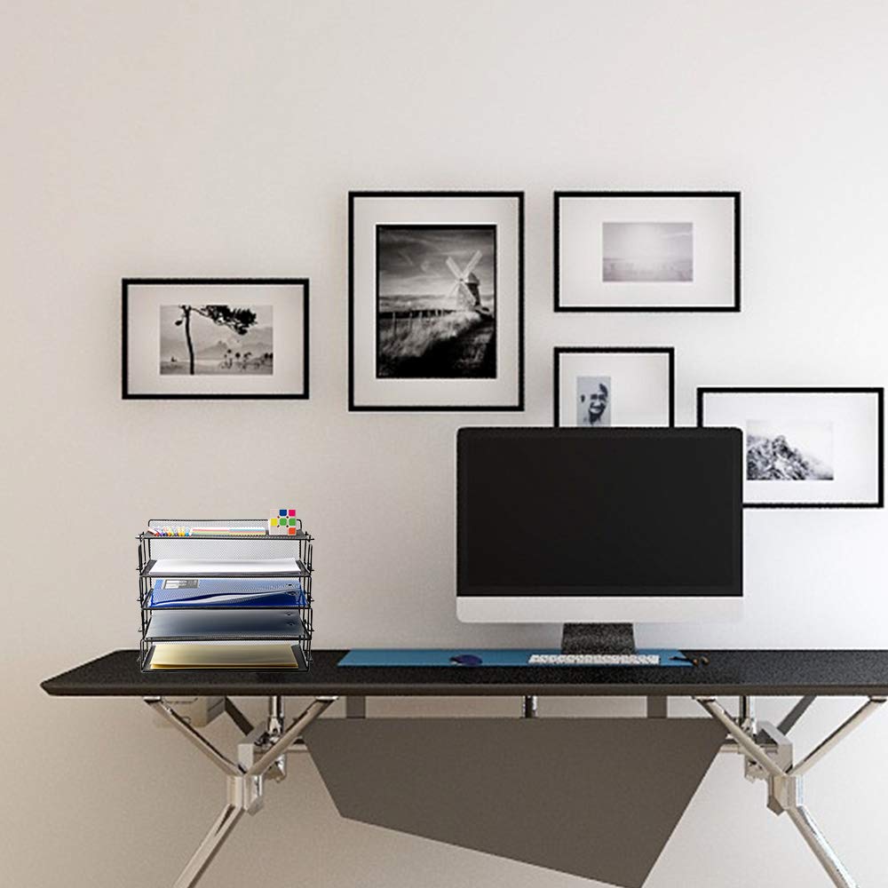 4 Tier Stackable Letter Tray with Desk Stand Folders Letters Paper Desk Trays Metal Black