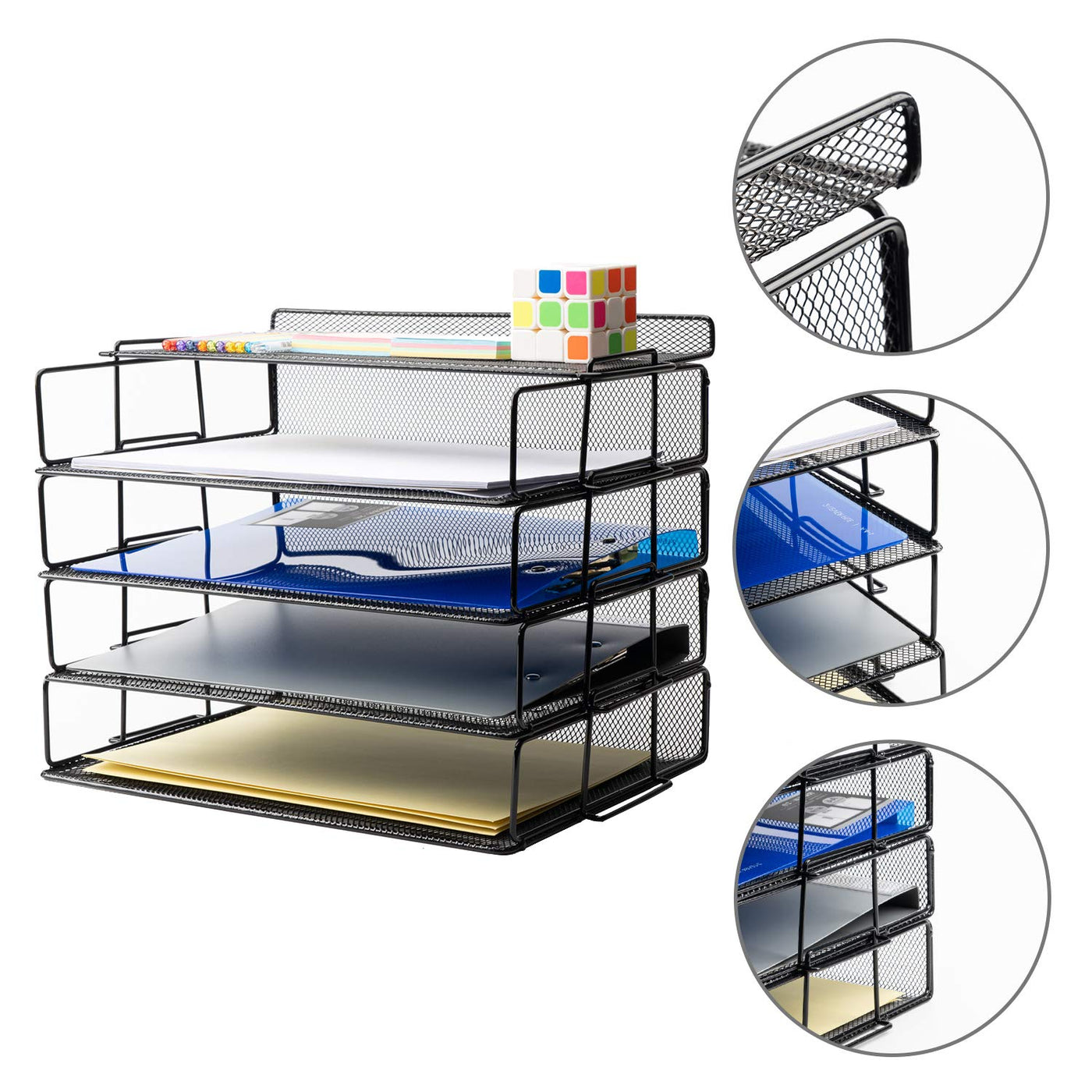 - 4 TIER STACKABLE TRAYS The Desktop File Organizer gives you unlimited possibilities, such as: B. use a shelf separately or add more layers on it, store types of paper in one place and easily add additional layers to maximize your space.