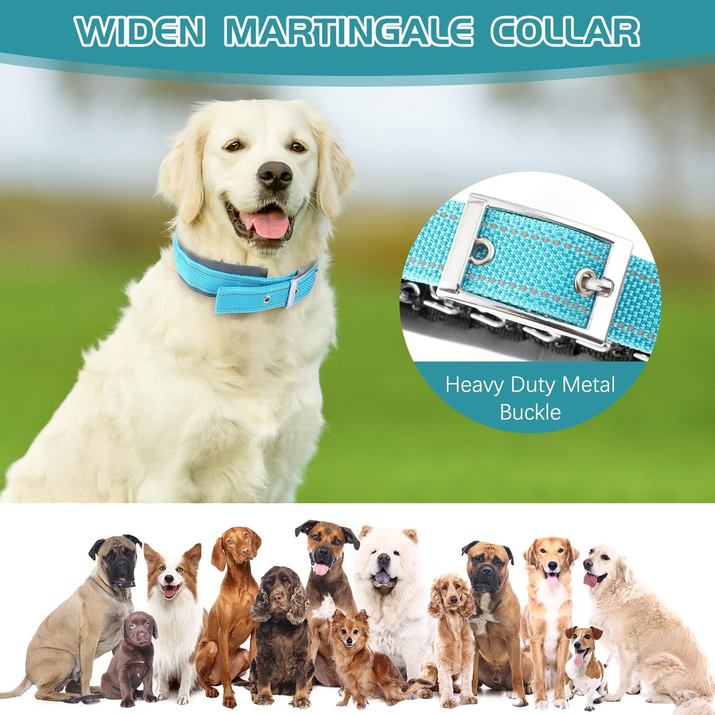 Adjustable No Pull Dog Collar - Heavy Duty Martingale Slip Collar with Reflective Widened Nylon & Metal Buckle for Training Walking Hunting (Small/Medium/Large Dogs),Blue,L L Blue