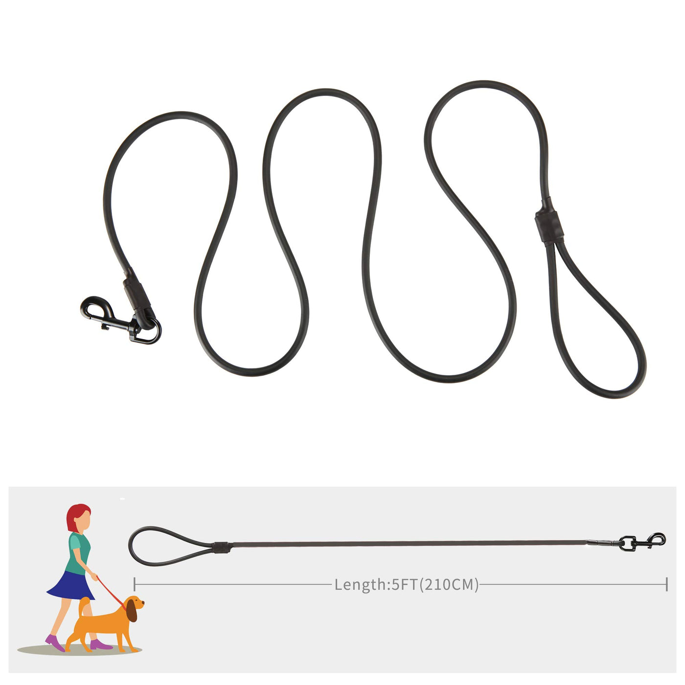 Size:5ft long | Color:Black Anas's Pet Supplies - we are committed to providing you with more useful and meaningful pet supplies. keep you close to your pet. Anas's Dog Leash is made of nylon with PVC coated. Flexible and durable. compare other dog leashes. It is more comfortable and stronger. Great for small docile dog dogs (Weigh less than 22 pounds). You don't need to worry about knotting and stinky problem. It is easy to clean with soap and water. Waterproof design - you could play with your dog on the beach, or on a rainy day. Easy to grip, even when wet. 360° Rotating Clasp. Colors: Orange, Pink, Black, Purple. Size: 5 feet & 7 feet, approximately 3/10” wide. Note: It lasts for many years, as long as your dog does not chew.