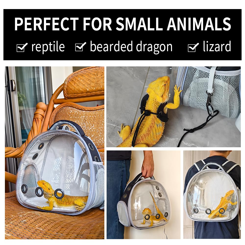 - Spacious Design for Comfort and Safety: The bearded dragon backpack carrier with harness measures 11.8 Lx 8.2 W x12.6 H inches, offering ample internal space. TIt is very suitable for most small animals, such as bearded dragons, guinea pigs, bunny, hamsters and kittens