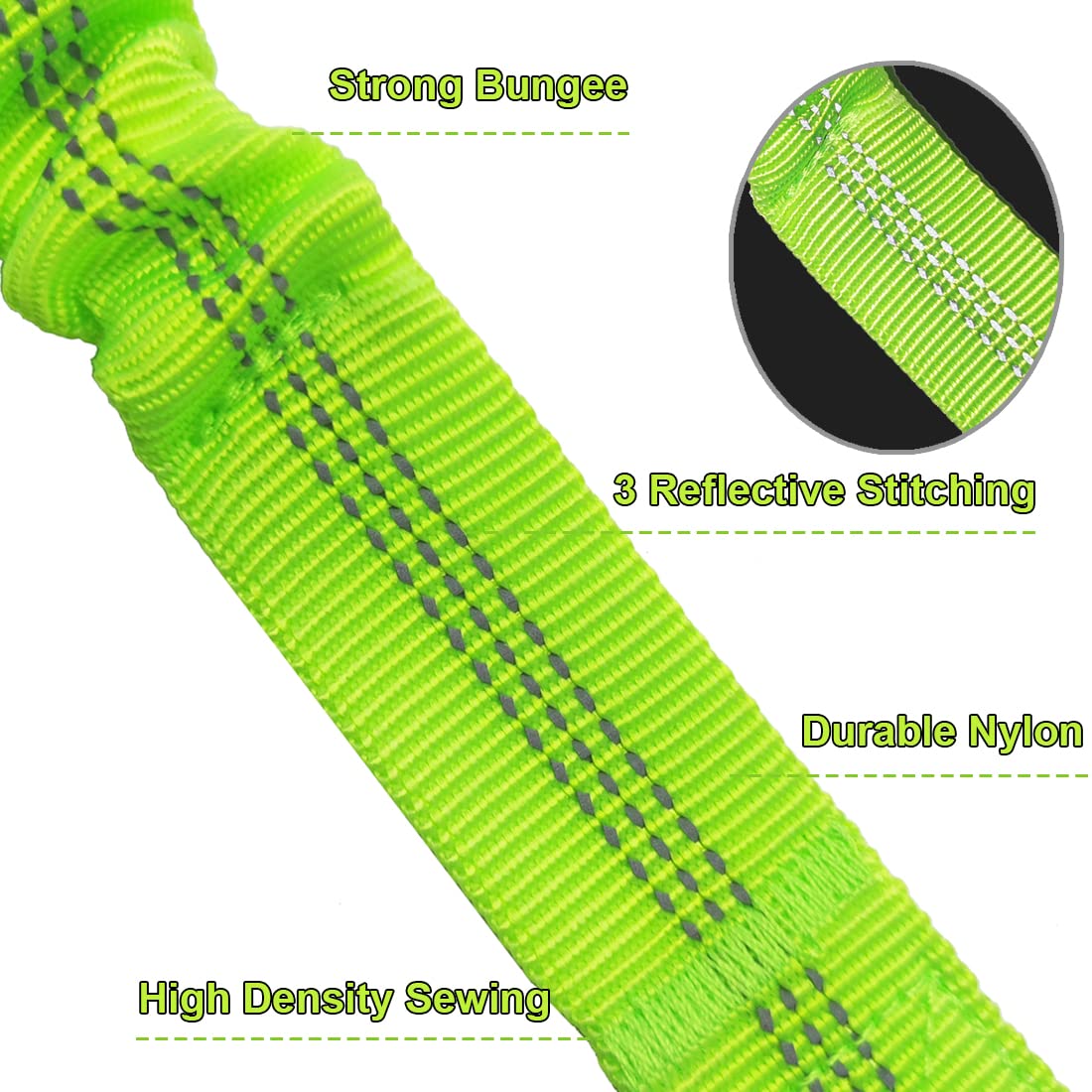 - 3 thick strips of reflective stitching for extra visibility and safety at night. Reinforced with sturdy silver snap hook and D-ring, be more compact and fashion