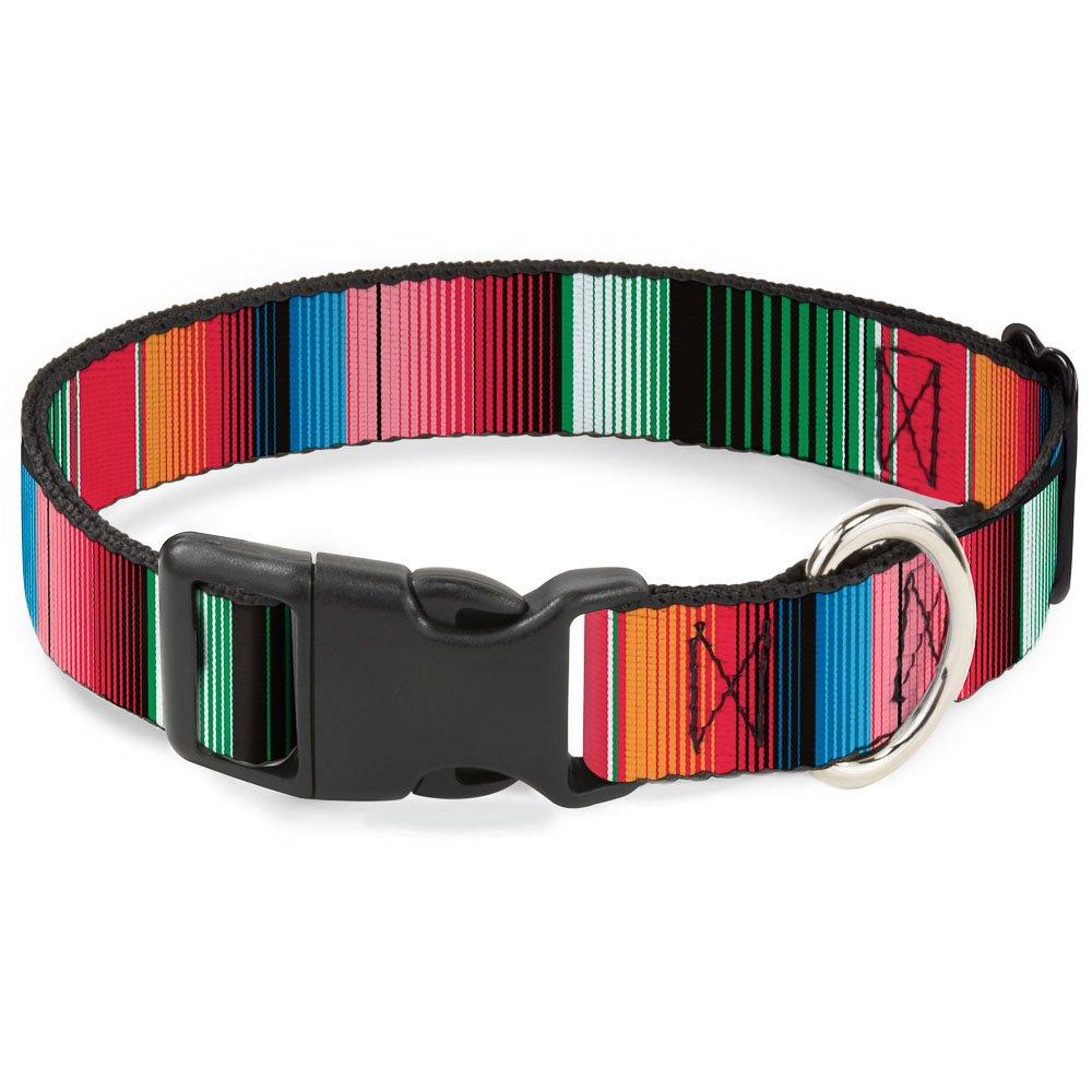 Buckle-Down Plastic Clip Collar - Zarape5 Vertical Multi Color Stripe - 1" Wide - Fits 15-26" Neck - Large