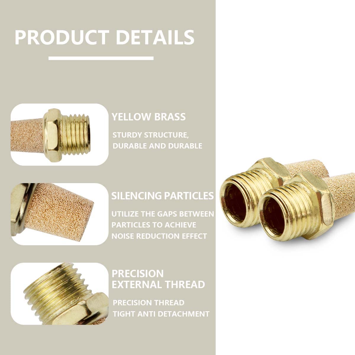 Bwintech 10 Pcs SL-02 air silencer, 1/4" external thread sintered brass exhaust silencer