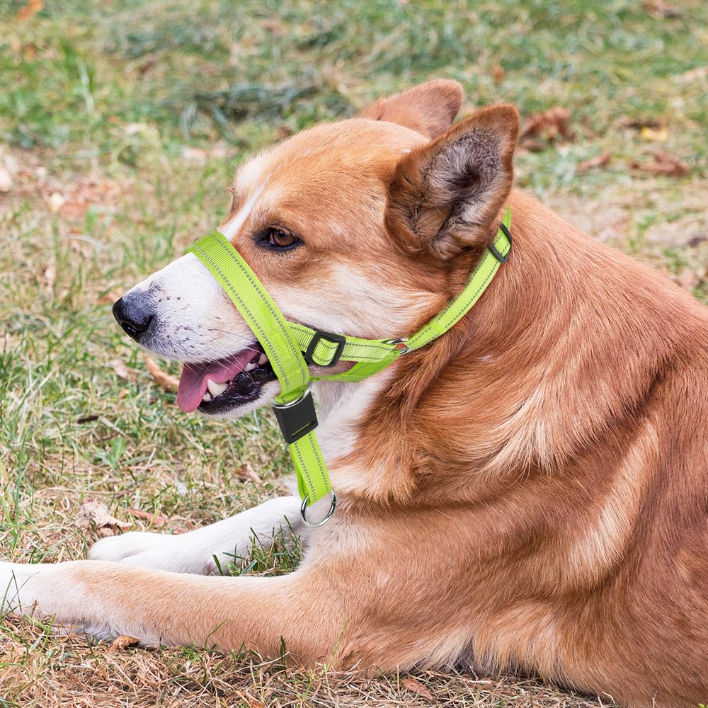 Candofly Dog Headcollar - Adjustable Dog Head Halter Reflective Head Collar Pet No-Pulling Collar for Easier Walk (Green, Large) Large (Snout 7.9"-17.3") Green