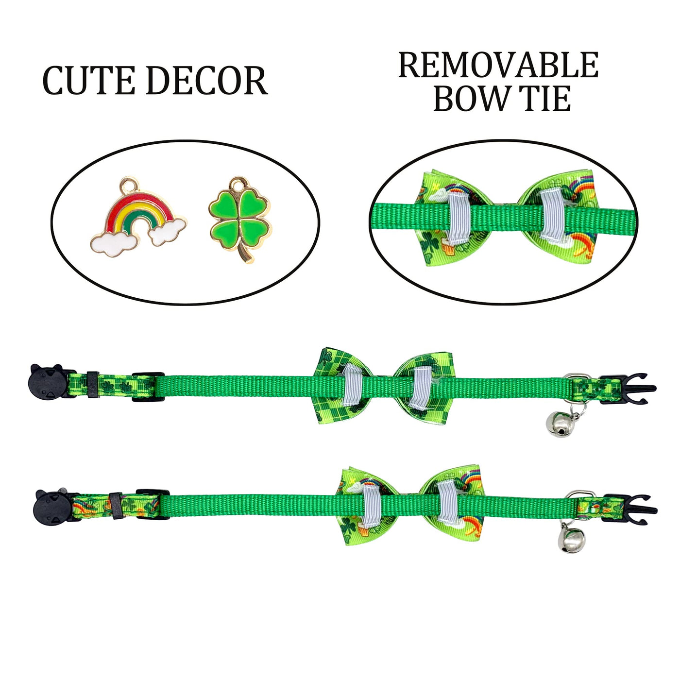 Casidoxi 2 Pack St. Patricks Day Cat Collar Breakaway with Bow Tie & Bells, Shamrock Irish St Patricks Cat Bowtie Collars for Kitten Cats