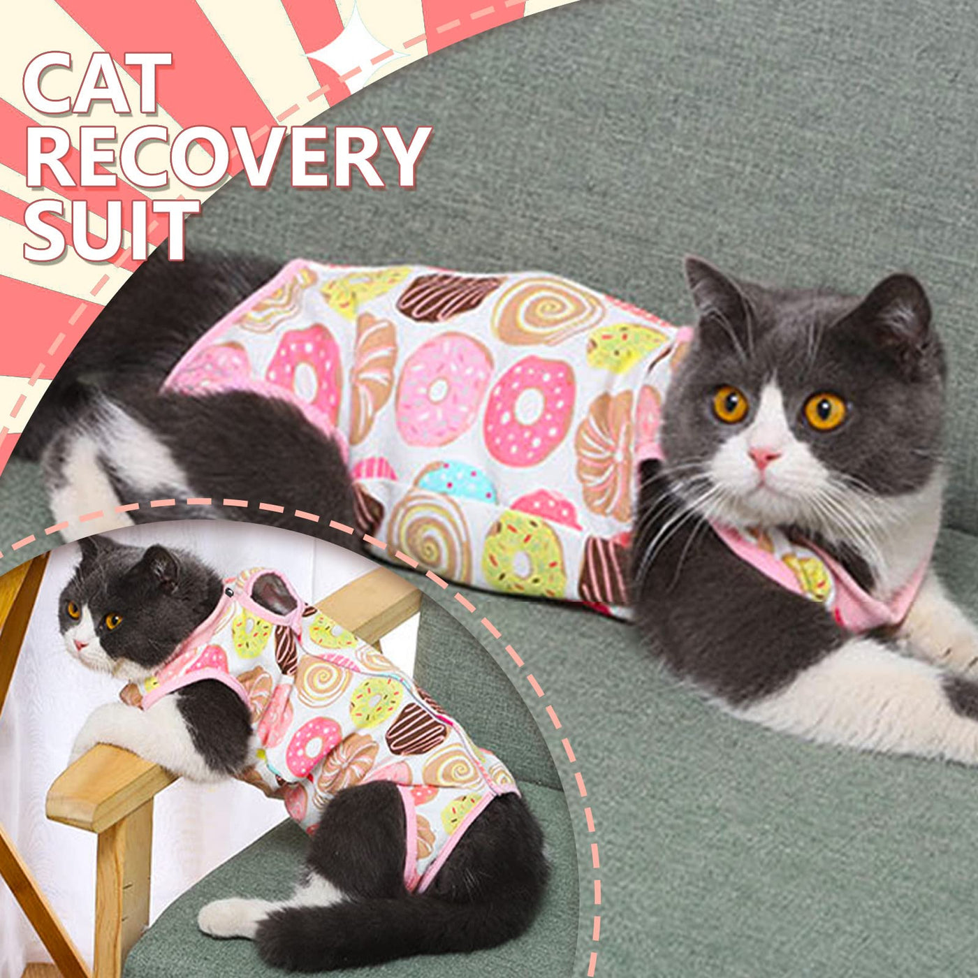 Cat Recovery Suit, 1 Pack Donut Pattern Cotton Cat Wound Surgery Recovery Suit Soft After Recovery Surgery for Small Cats and Dogs, M