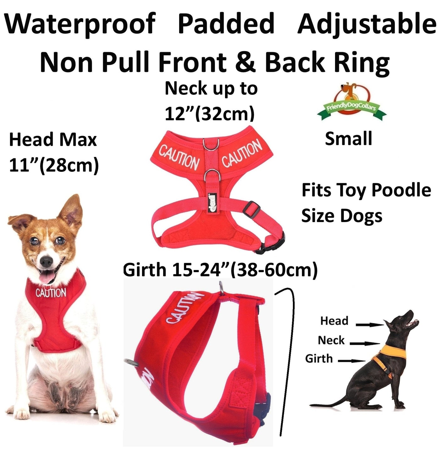 Caution Red Color Coded Waterproof Padded Adjustable Non Pull Front and Back Ring Alert Warning Small Vest Dog Harness Prevents Accidents By Warning Others of Your Dog in Advance