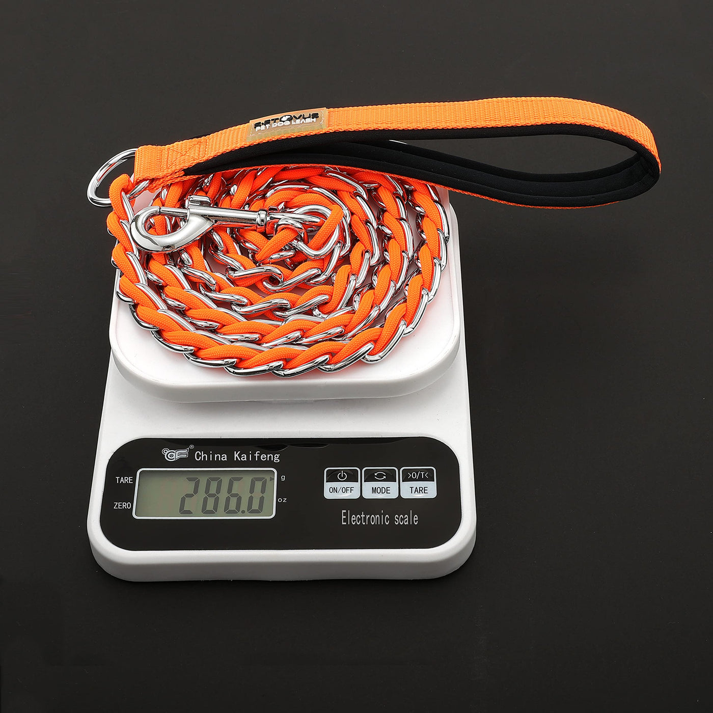 - [Durable]: This durable dog chain leash is designed with super strong stainless steel heavy metal chain heavy-duty rotating snap buckle design, which is durable. Nylon fabric has a long-lasting spirit and increases durability.