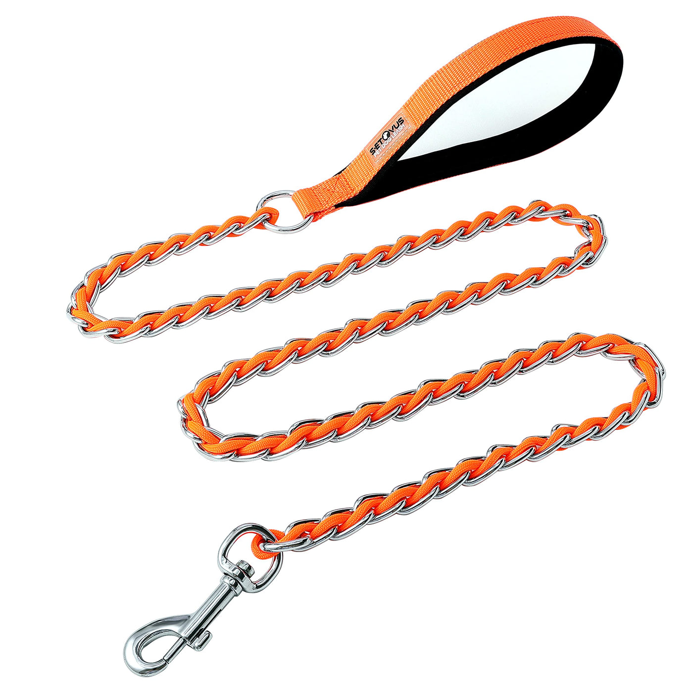 Color:Orange | Size:4FT Brand: S-ETOVUS Quality: Durable, chew-resistant metal dog chain, and the hardware completely prevents rust. Material: Nylon webbing handle + iron chain + nylon rope inner woven. Type: Basic leash, training dog leash, specially designed for large, medium and small dogs. It is very suitable for dogs' daily work, walking, training, and calling back and forth to command. It is also very creative as a gift.