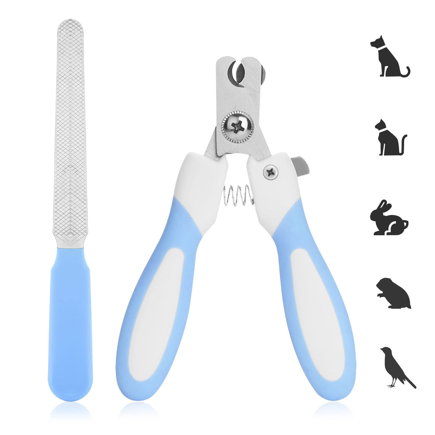 cobee dog nail clippers with nail file, stainless steel cat nail clippers, pet nail clippers suitable for puppies, kittens with safety clasp and protective guard to avoid overcutting (blue) Blue
