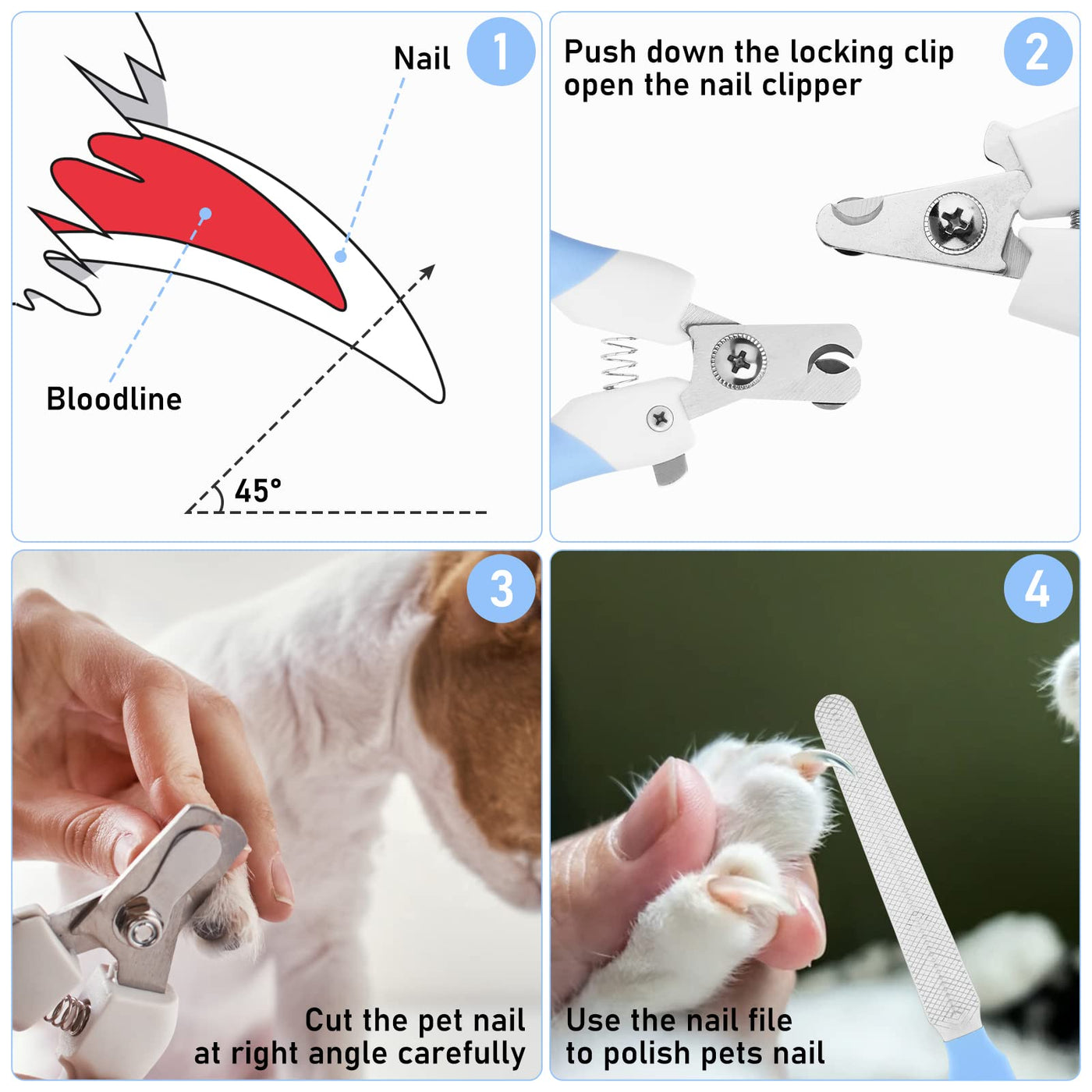 - Safe Grooming Clipper The nail clippers for dogs and cats are equipped with a safety valve that limits the cutting length and provides a safe and precise angle, without hurting the pet's paw. The nail clippers have a safety lock feature that prevents children from using them and are easy to store.