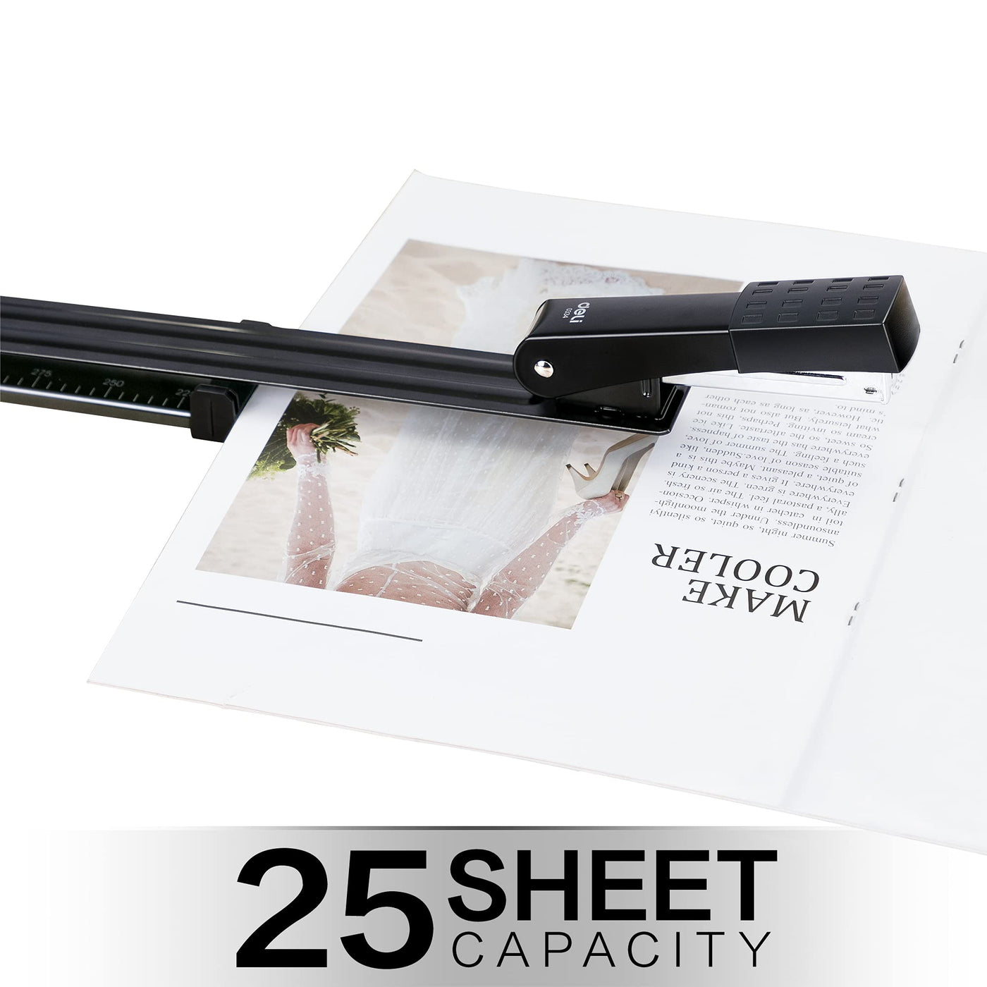 Deli long arm stapler, long stapler for brochures and book binding, 25 sheets, black