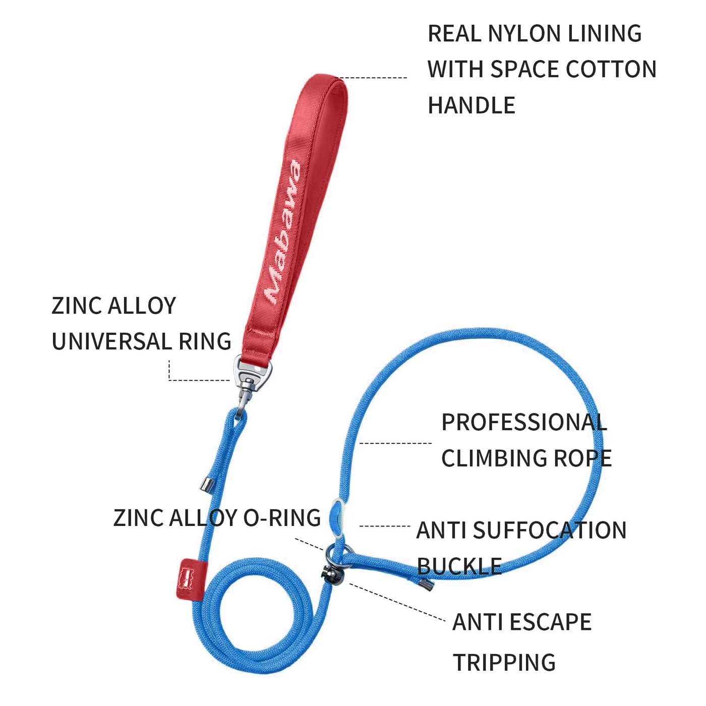 - Lightweight & Durable: Slip lead dog leash is made of high-quality climbing grade nylon rope, 0.23 inches (6mm) in diameter, lightweight, durable, wear-resistant, not easy to break and twist, it can withstand strong pulling force. The dog stop pulling leash has 1 zinc alloy O-ring, which can be used to hang dog walking accessories.