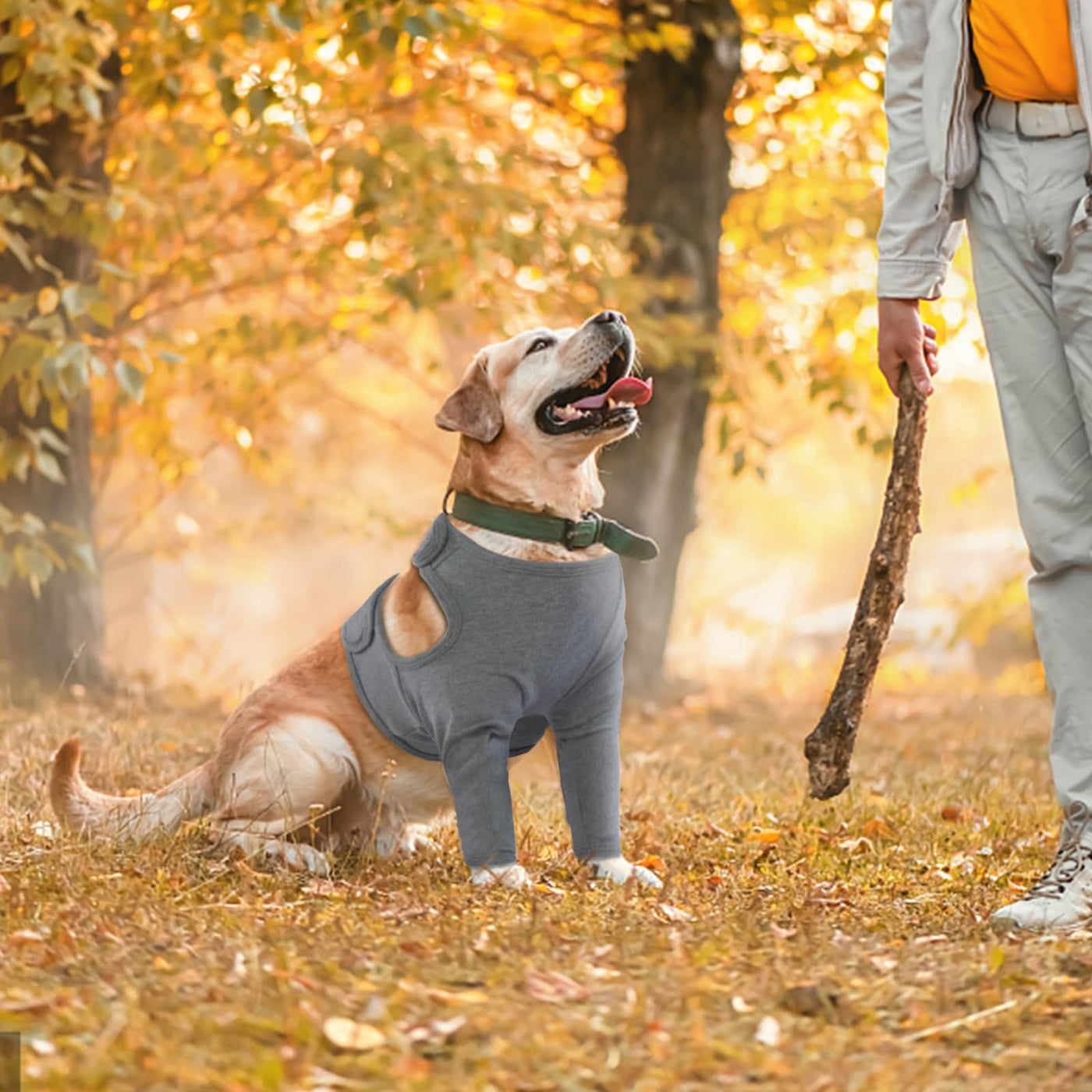 - Alternative to Dog Shame Ring- This dog leg wound guard is a great alternative for dogs after surgery. The Anti-Licking Dog Leg Wound Holder not only prevents your dog from licking the front leg wound, but also allows your dog to move around more freely without interfering with eating, sleeping, going to the toilet or playing.