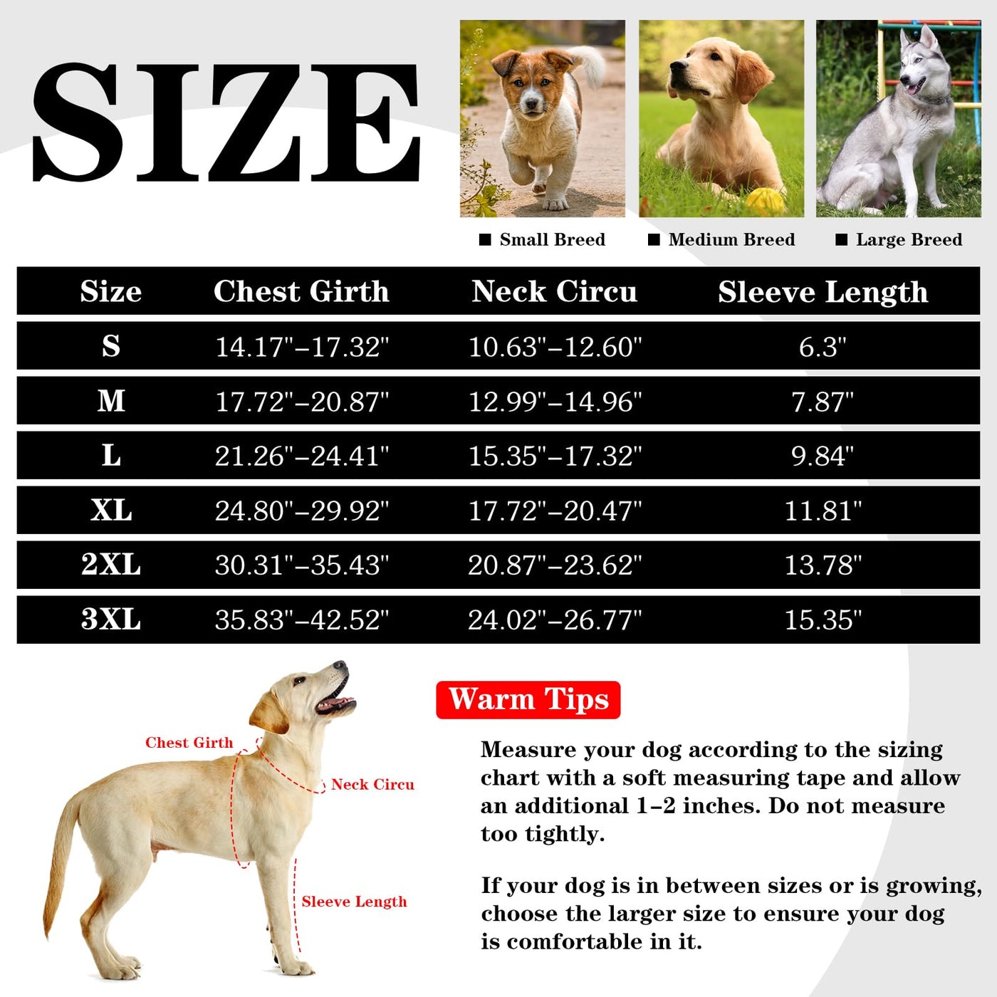 - S-3XL SIZE OPTION-This front leg dog post surgery recovery vest is available in 6 sizes, suitable for different size dogs. TIPS: To ensure that you choose the right size for your furry love, please measure your dog's chest size carefully before placing an order, and choose the model that matches the actual leg size against the size chart.