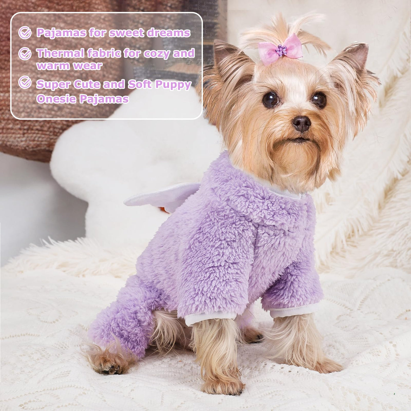 Dog Pajamas Fuzzy Velvet Dog Sweater, Angel Wings Dog Winter Pjs Clothes for Small Dogs Girl Boy, Dog Outfits for Chihuahua Clothes Yorkie, Pet Jumpsuit, Cat Apparel