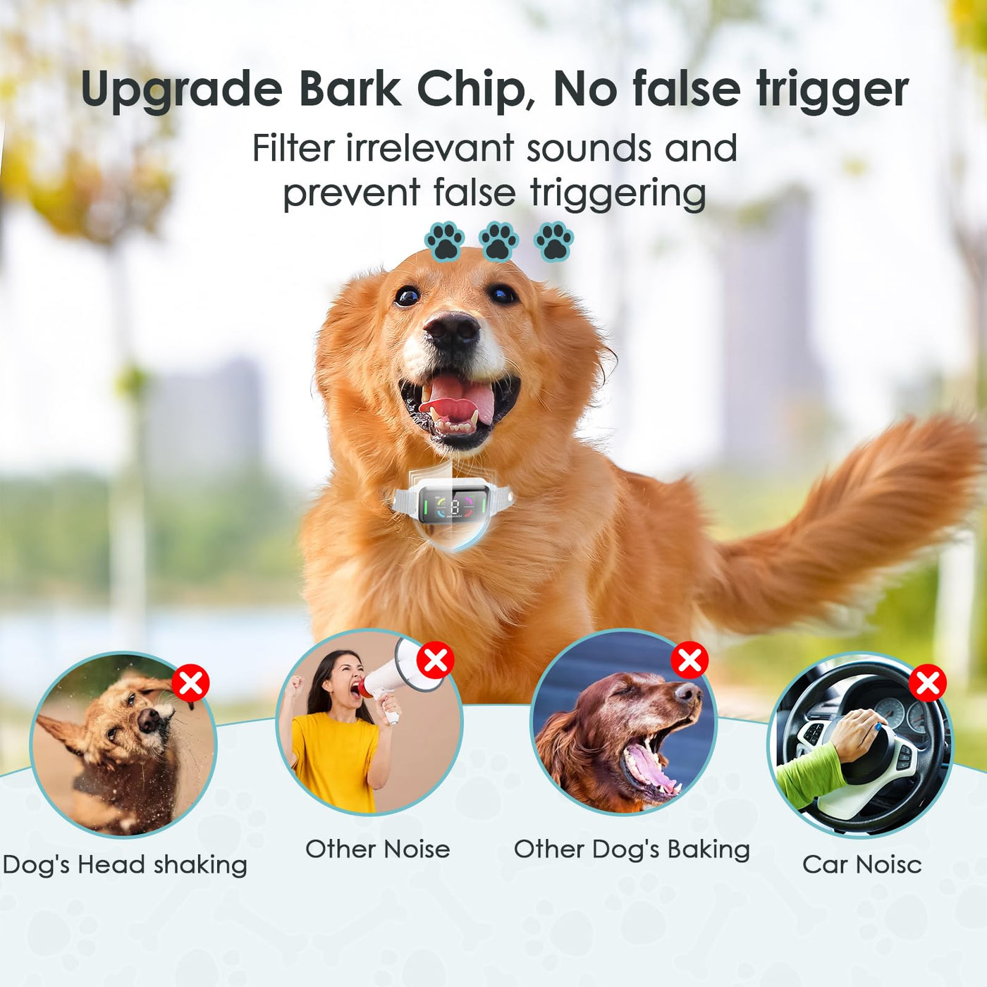 - Smart Stop Barking, Easy to OperateThe anti bark collars for dogs includes various accessories, you will get Smart Stop Barking Collar*1, Test Bulb*1, Adaptable Charging Cable*1, Steel Probe*4, Silicone Probe Cover*4, User's Manual*1.All you need to do is to buy the Barking Control Device at home, assemble it according to the requirements, turn on the power, and then wear it on your dog's neck, and those tiresome dog noises will slowly disappear.