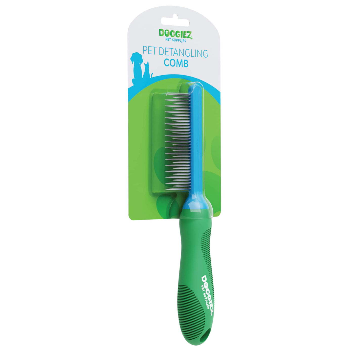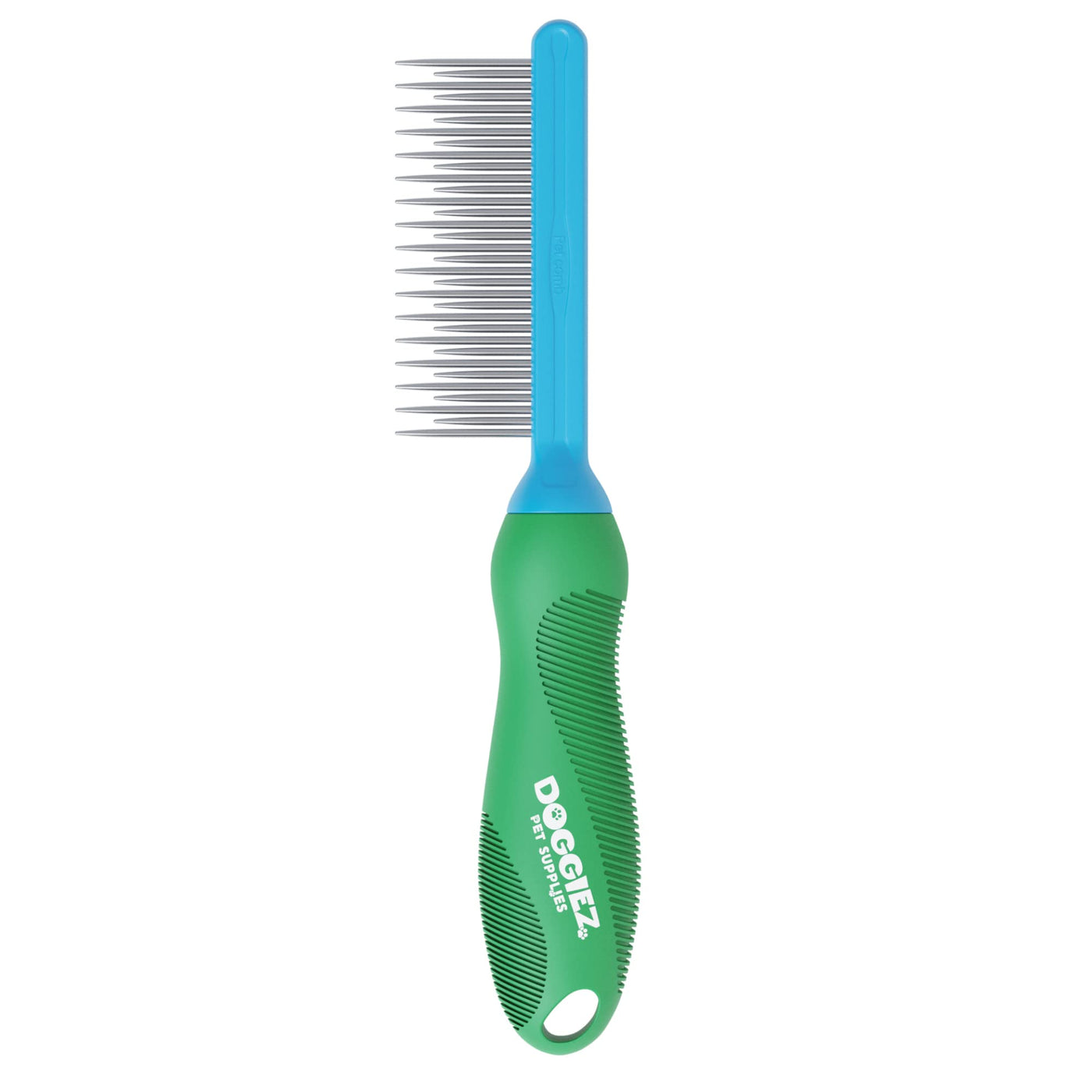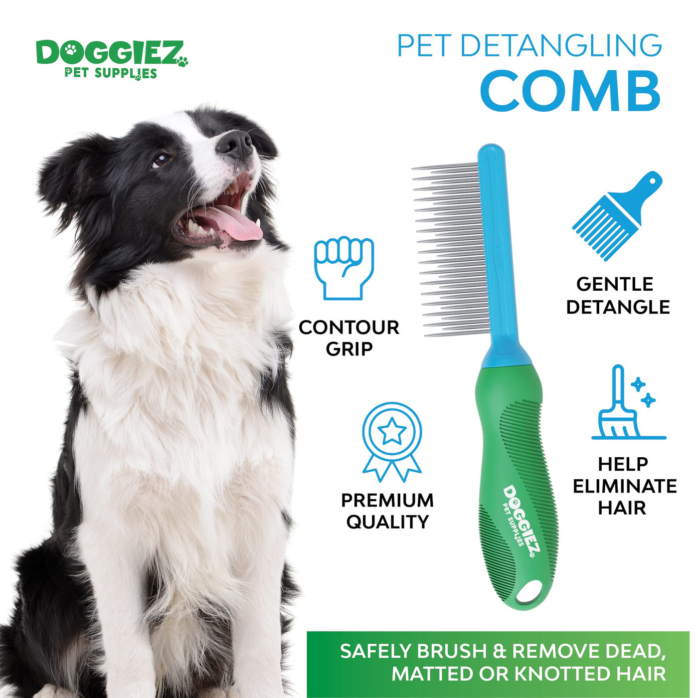 Doggiez Pet Supplies - Pet Detangling Comb - 2 in 1 Dog Comb and Cat Comb Design for Long Hair & Short Hair - Metal Comb For Dogs and Cat Grooming to Safely Brush & Remove Dead, Matted or Knotted Hair