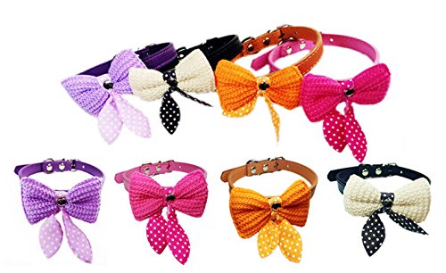 - Cute Knit Bowknot PU pet dog collar and leash set