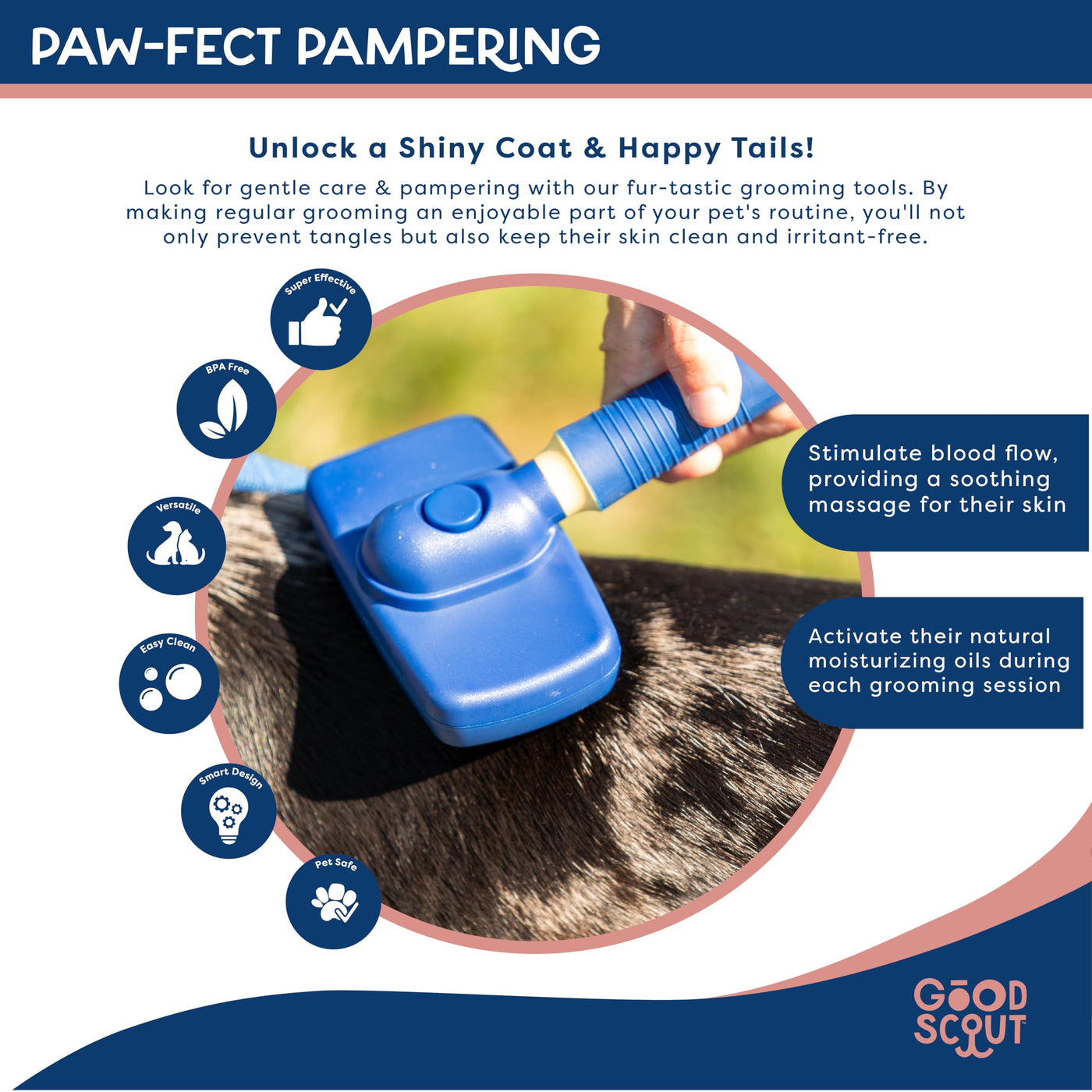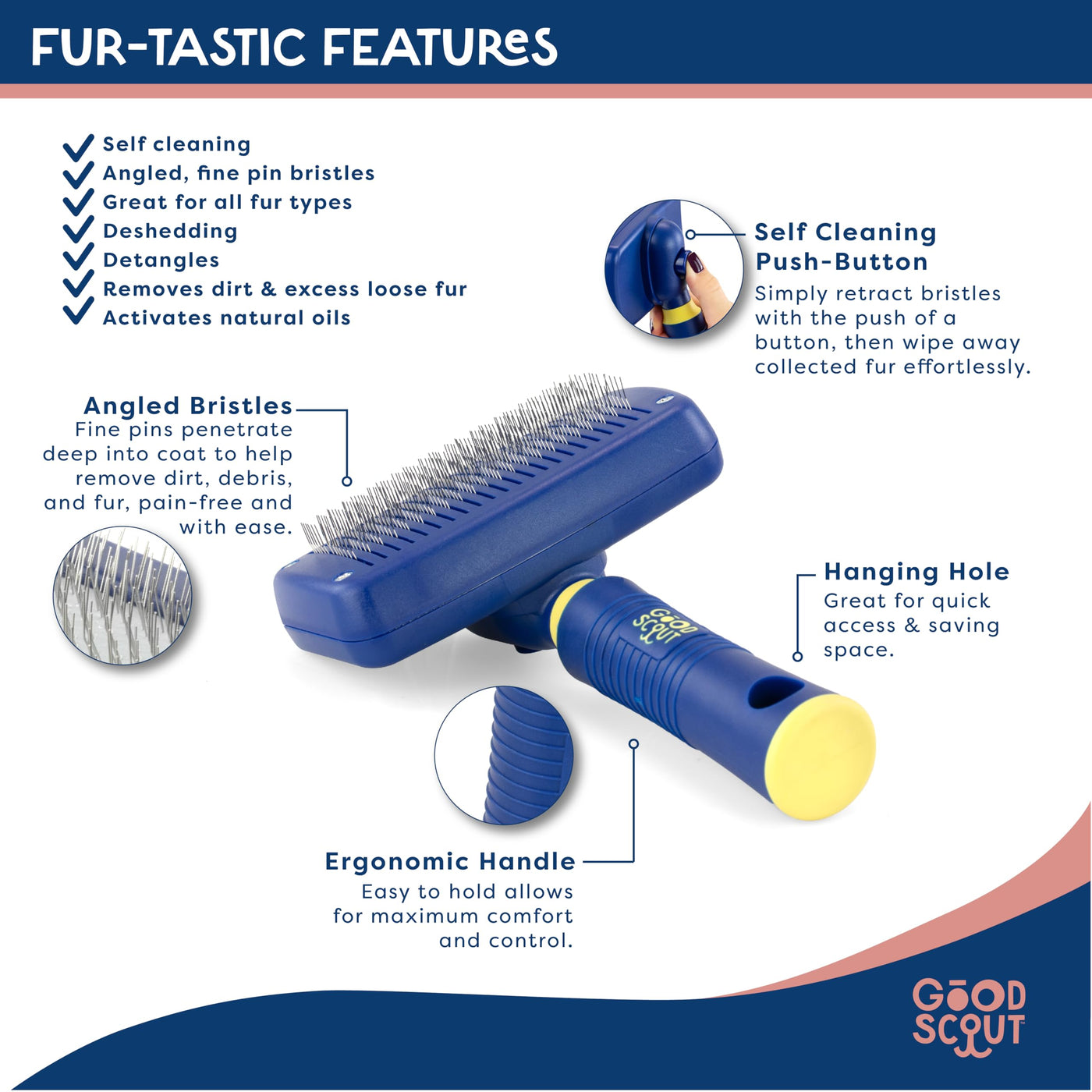 Good Scout Self-Cleaning Slicker Brush, Best Deshedding Tool for Dogs & Cats, Gentle, Safe & Effective Grooming Tool for Long & Short Haired Animals