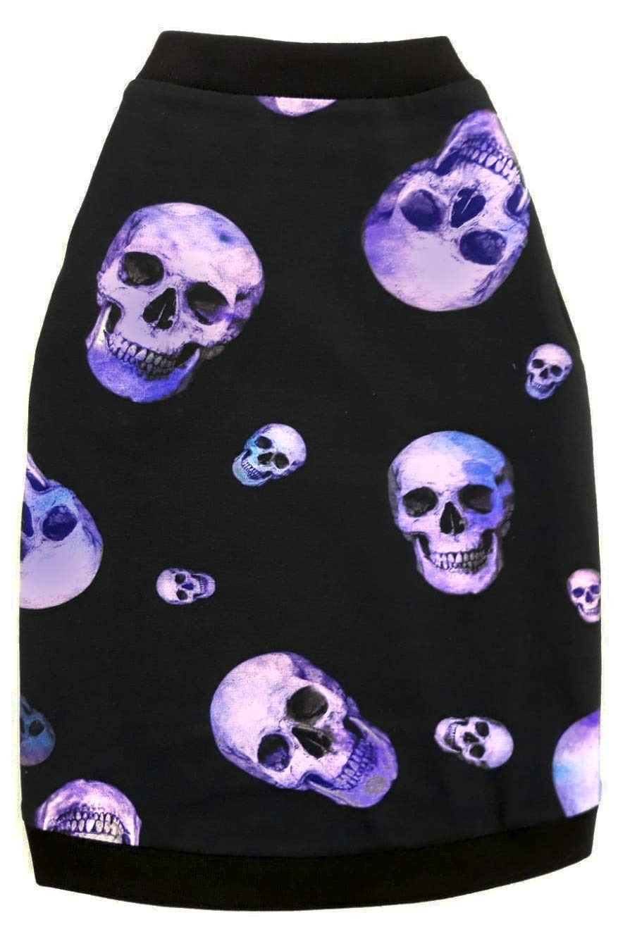 Hairless Cat's Cotton Stretch T-Shirt Purple Sculls for Sphynx Cats (L) L