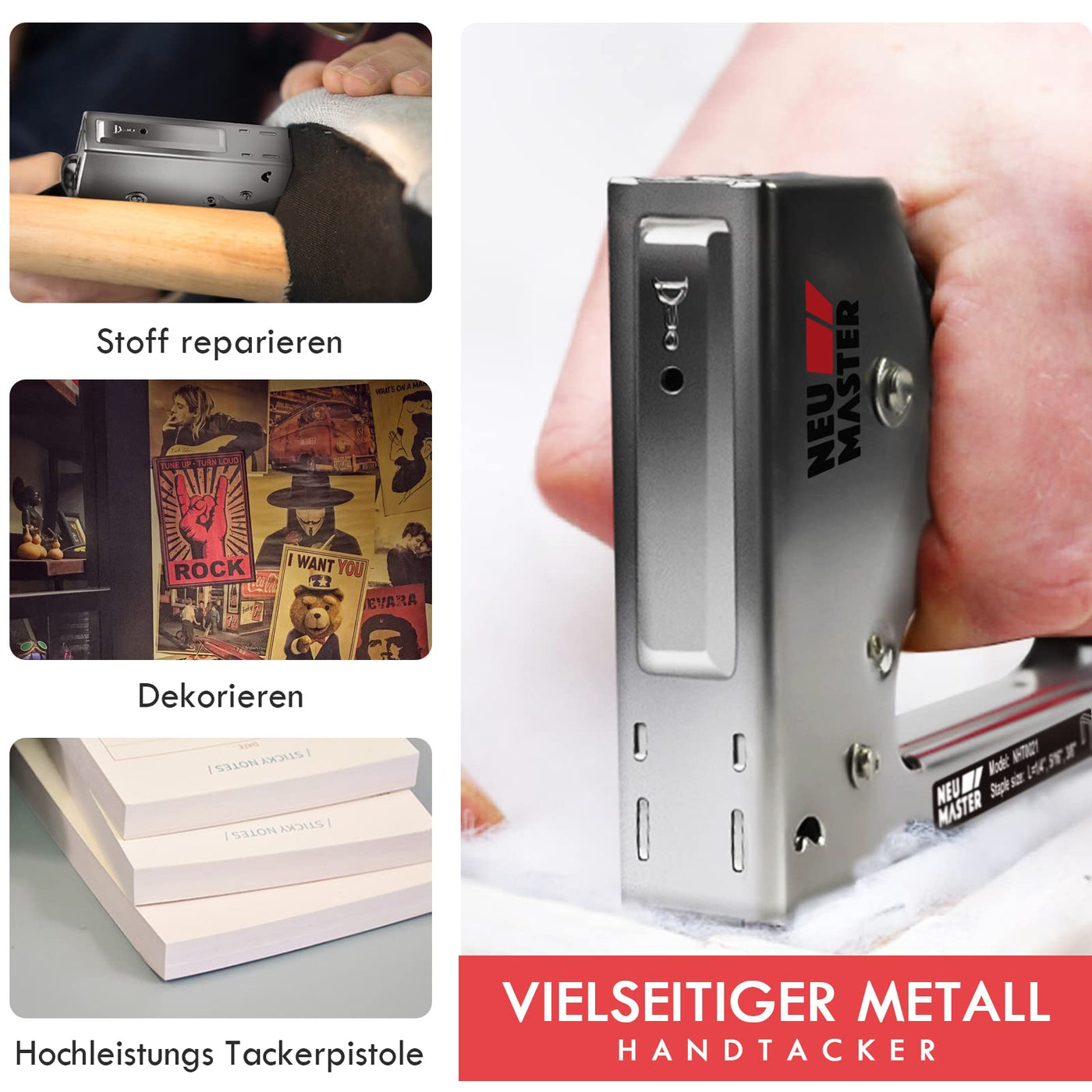 Hand tacker set - NEW MASTER hand tacker lighter with 1600 Tap 53 (8-10mm) staples, powerful tacker gun for carpentry, decoration, fastening