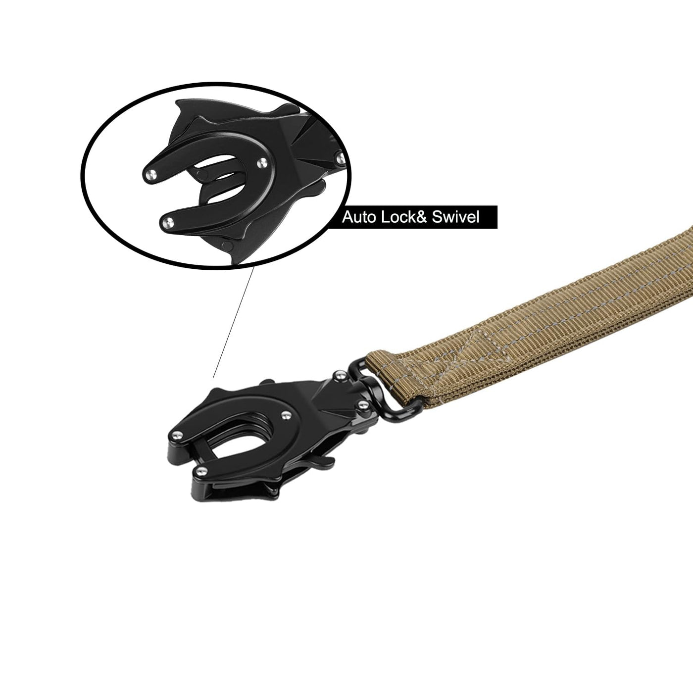 - [ Heavy duty Buckle ]: The dog leash uses a heavy-duty metal buckle (2500N tensile test), which can automatically lock the collar and dog vest. Once locked, it must be manually opened and will not unlock due to accidental contact with other objects. It is paired with 100% tubular nylon webbing, with bartack stitching at every seam and stress point.