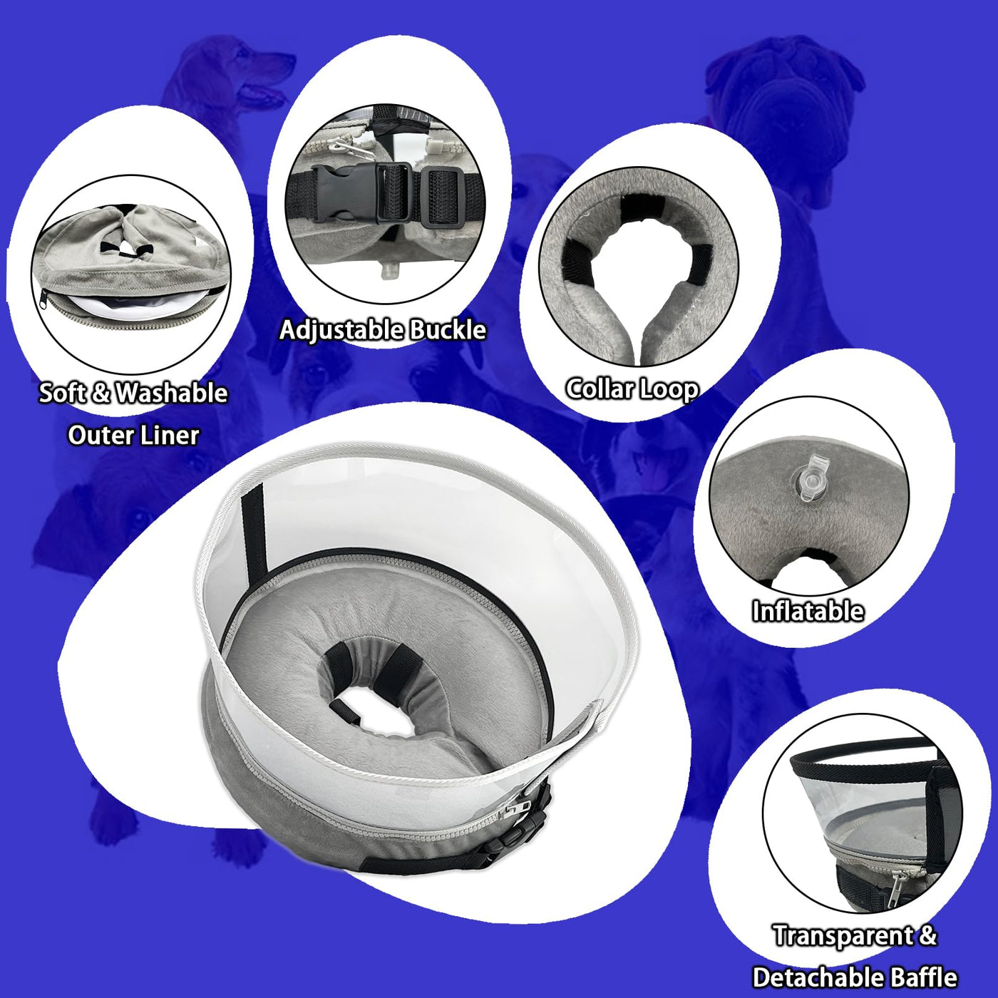 Inflatable Dog Cone Collar - Surgery Recovery Adjustable Soft Alternative Neck Donut with Shield for Small Medium Large Pet,L