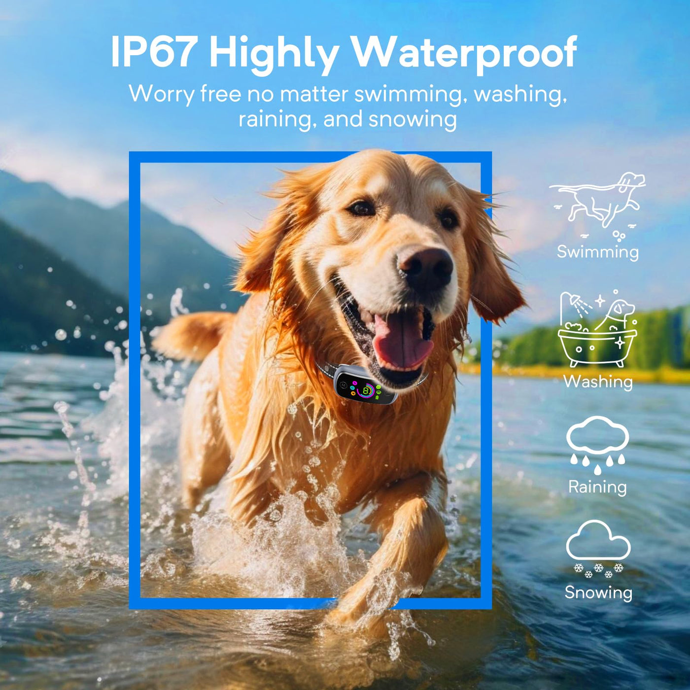 - New-user Friendly & IP67 Waterproof: Our barking dog silencer collar with intuitive design is easy-to-use and totally manual-free. Set, wear, and enjoy, then the collar will do the job automatically, so you can have peace of mind that dog barking will be well-controlled when you are not at home. The anti barking collar is IP67 waterproof, suitable for indoor and outdoor activities. Whether it's a hike, a swim, or simply playing in the rain, our collar can handle it all