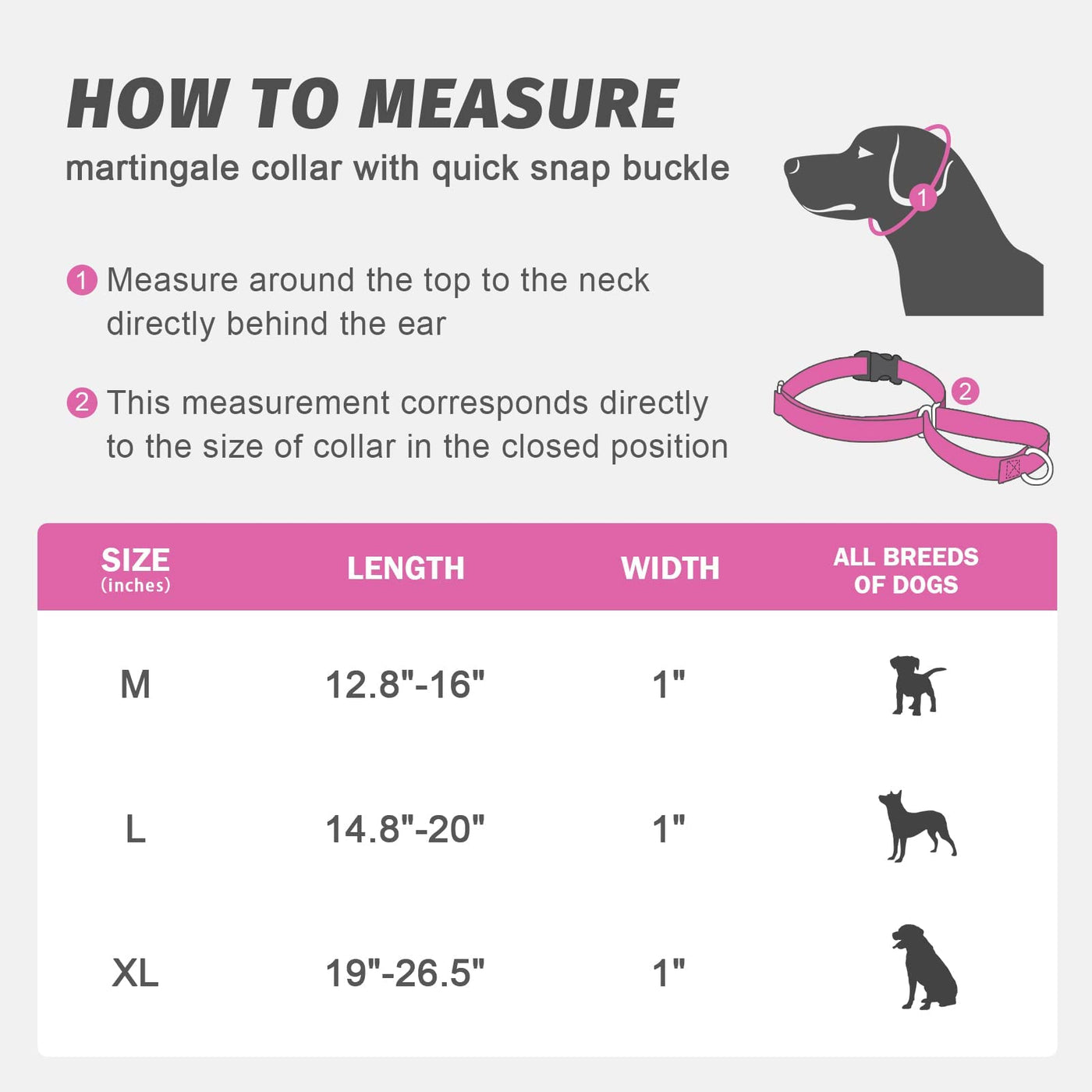 - 1.[ADJUSTABLE LENGTH] Martingale dog collar is easy to adjust and suitable for puppies, Medium Large X-Large breeds. Available in 3 sizes, M [1" x 12.8"-16"], L [1" x 14.8"-20"], XL [1" x 19"-26.5"].