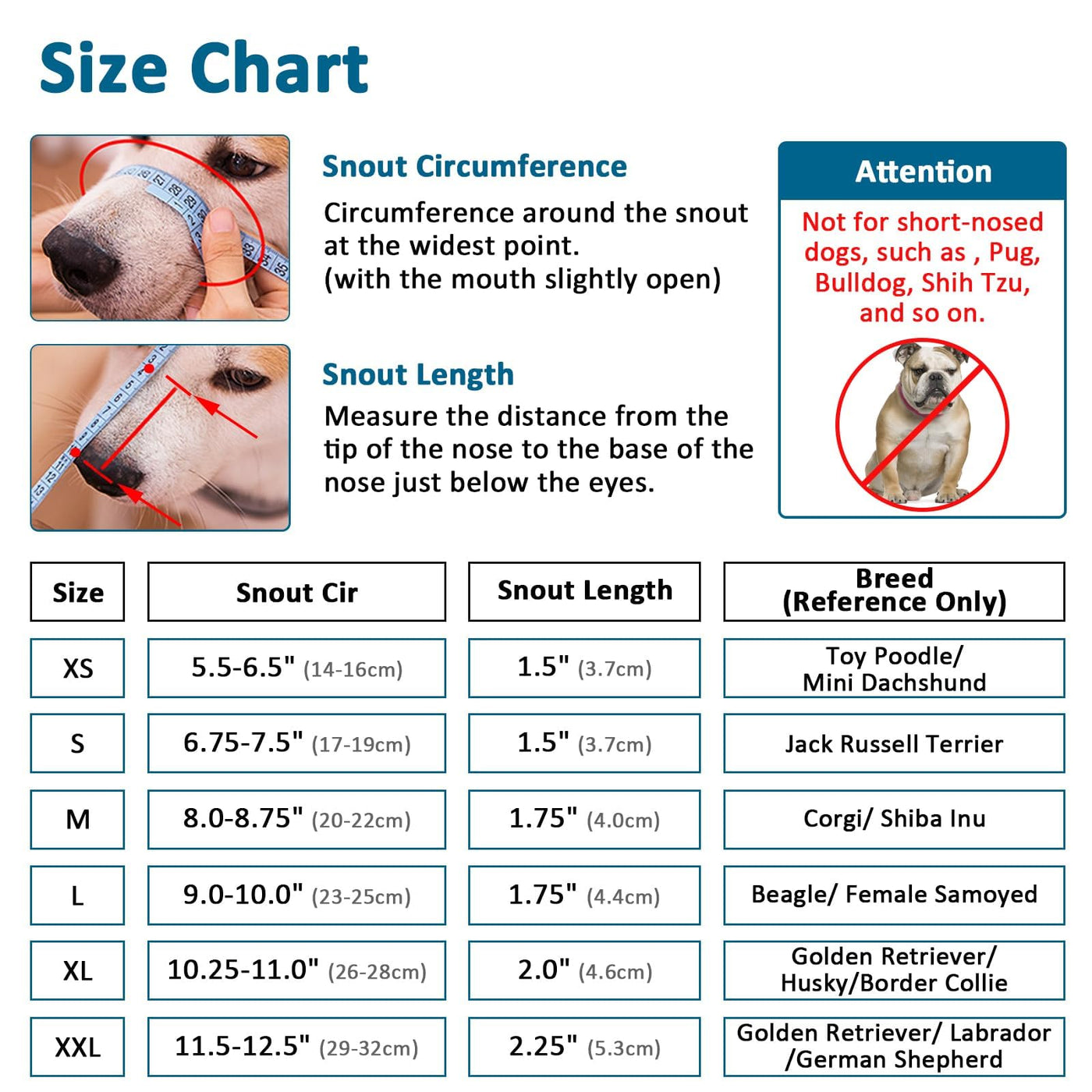 - Dog Muzzle for Large Dogs-Size XXL fits for snout circumference between 11.5-12.5". The muzzles for large dogs is suitable for Golden Retriever, Labrador, German Shepherd, etc., but not for aggressive or highly anxious dogs. Note: Please DON'T choose size without mesuring! If the snout circumference is between sizes, SIZE UP!
