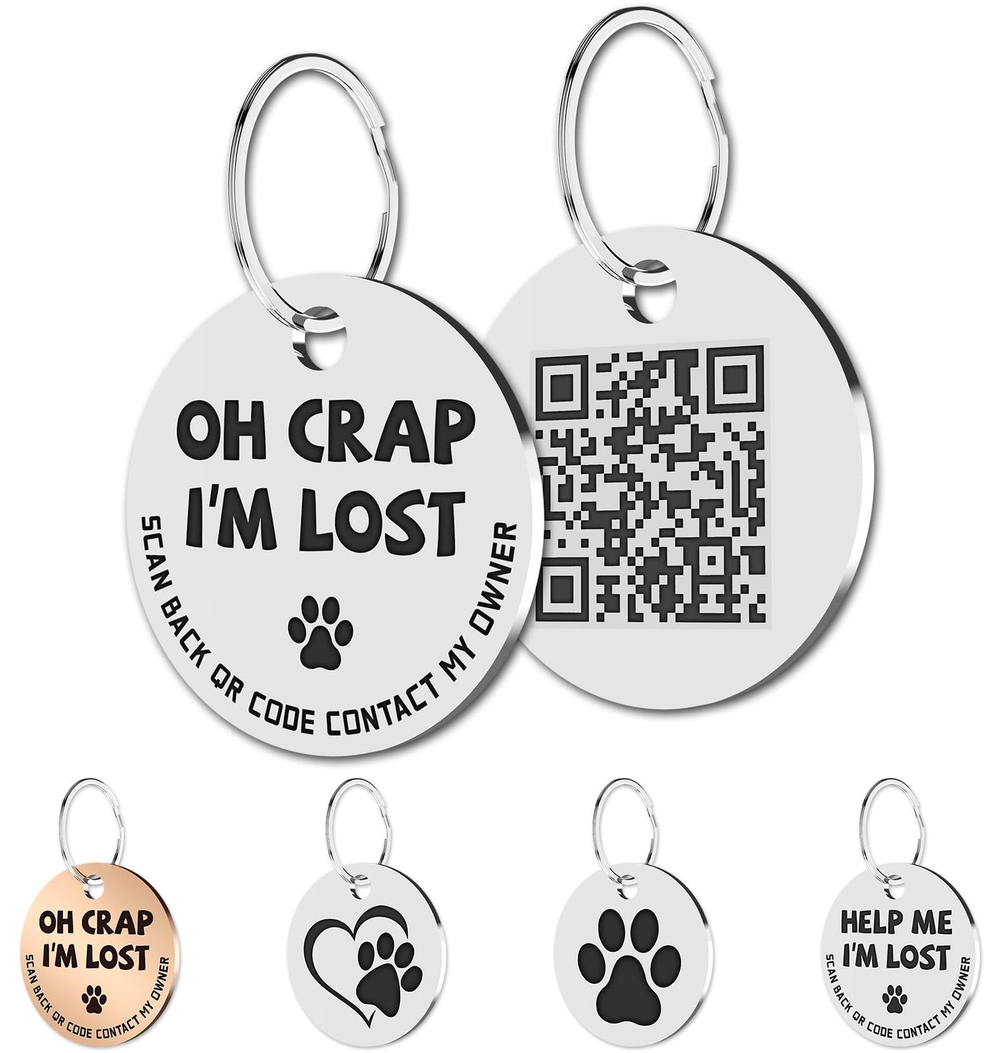 MYLUCKYTAG Stainless Steel QR Code Pet ID Tags Cat Tags - Pet Online Profile - Scan QR Receive Instant Pet Location Alert Email Im Lost,silver